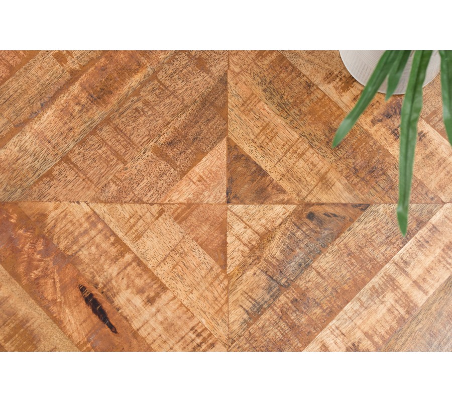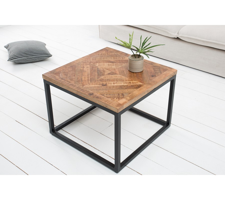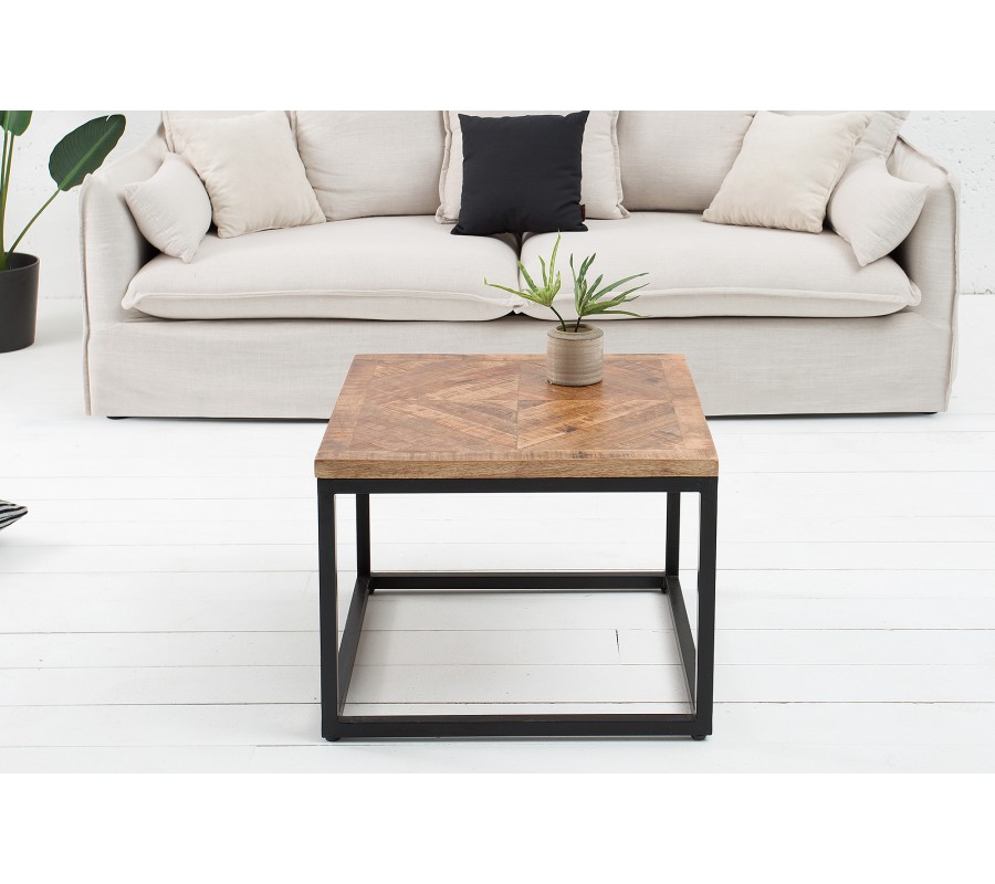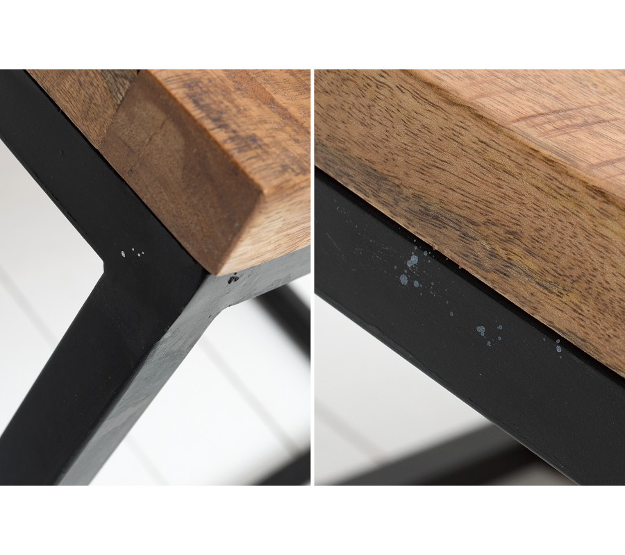 Industriálne pôsobiaci stolík Infinity je zaujímavý svojim vzor na vrchnej doske z mangového masívu. Na industriálnom vzhľade mu pridávajú hrubšie zvary čierneho kovového rámu. Tento stolík je ako uliaty do podobne pseudopriemyselne vyzerajúcich interiérov. Vrchná doska má hrúbku 3 cm a rozmery nôh sú 2,5 x 2,5 cm. Stolík ponúkame aj vo väčšej verzií a v prípade, že sa Vám nepozdáva prírodná farba mangového masívu je dostupný aj v sivej farbe.