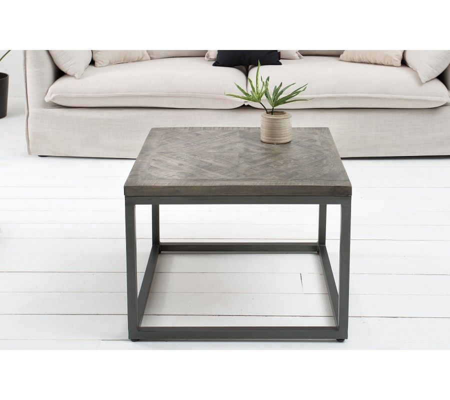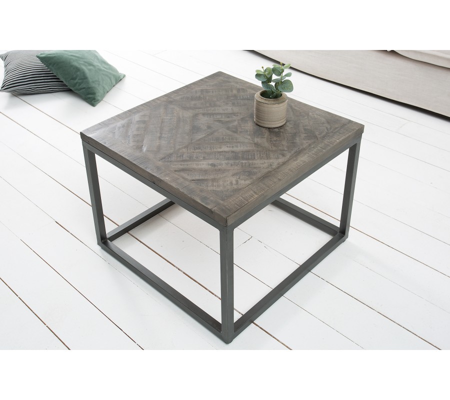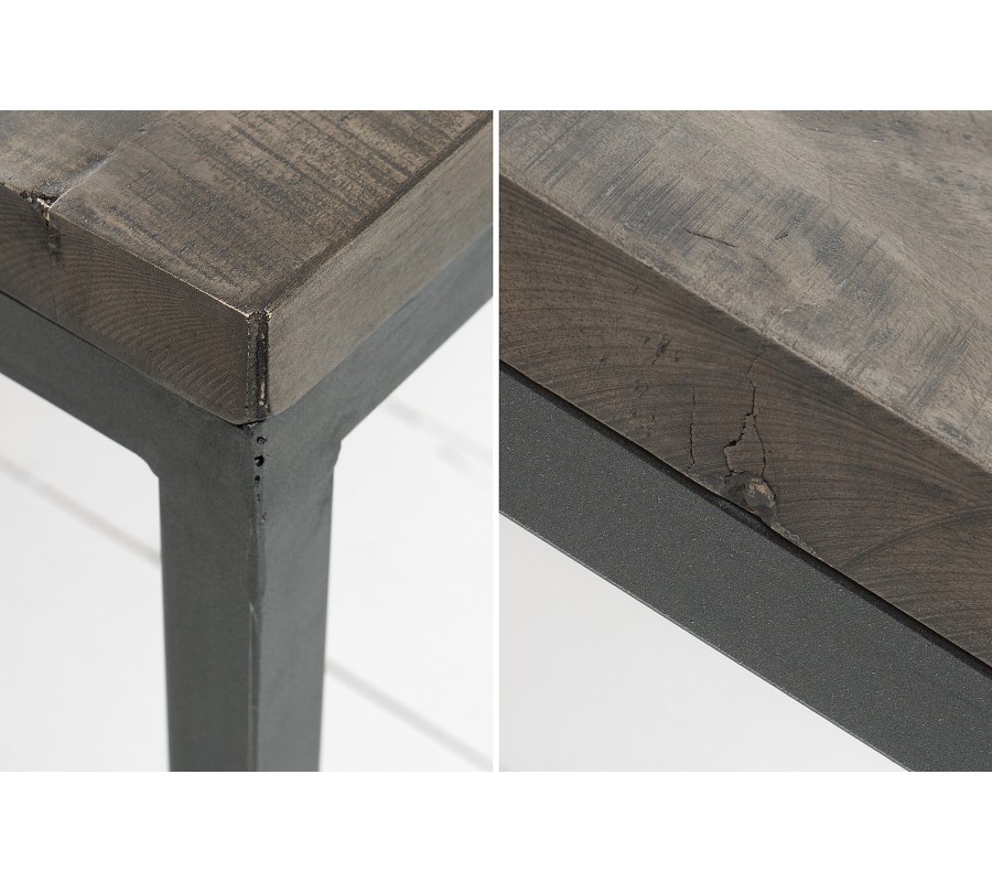 Industriálne pôsobiaci stolík Infinity je zaujímavý svojim vzor na vrchnej doske z mangového masívu. Na industriálnom vzhľade mu pridávajú hrubšie zvary čierneho kovového rámu. Tento stolík je ako uliaty do podobne pseudopriemyselne vyzerajúcich interiérov. Vrchná doska má hrúbku 3 cm a rozmery nôh sú 2,5 x 2,5 cm.