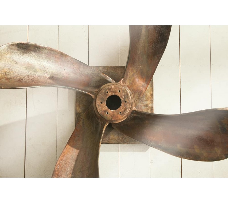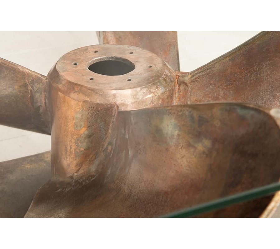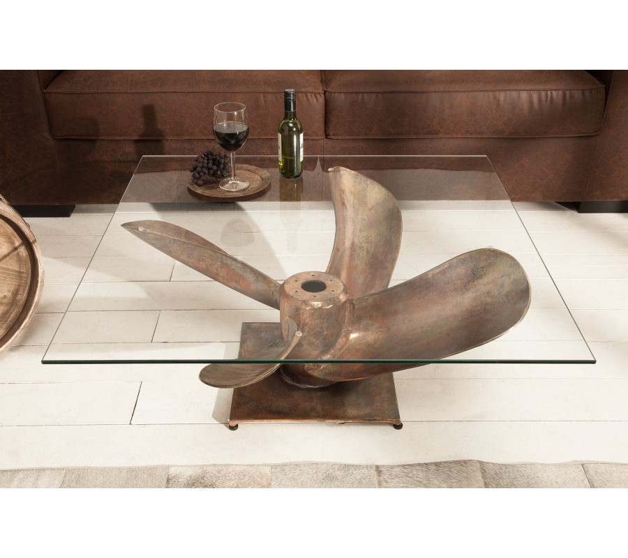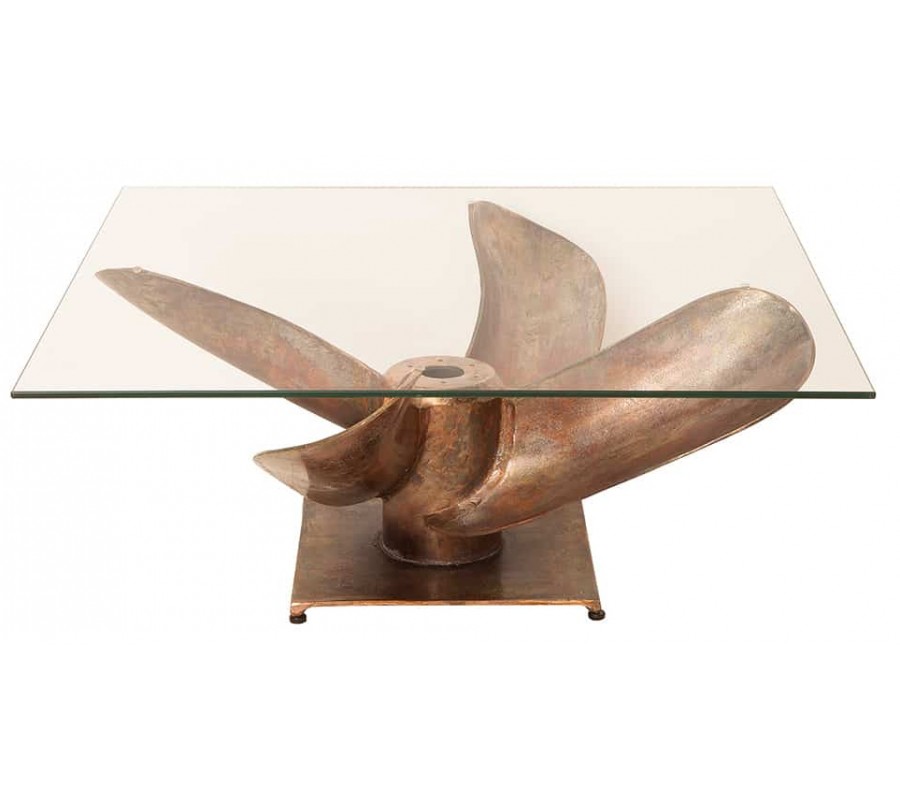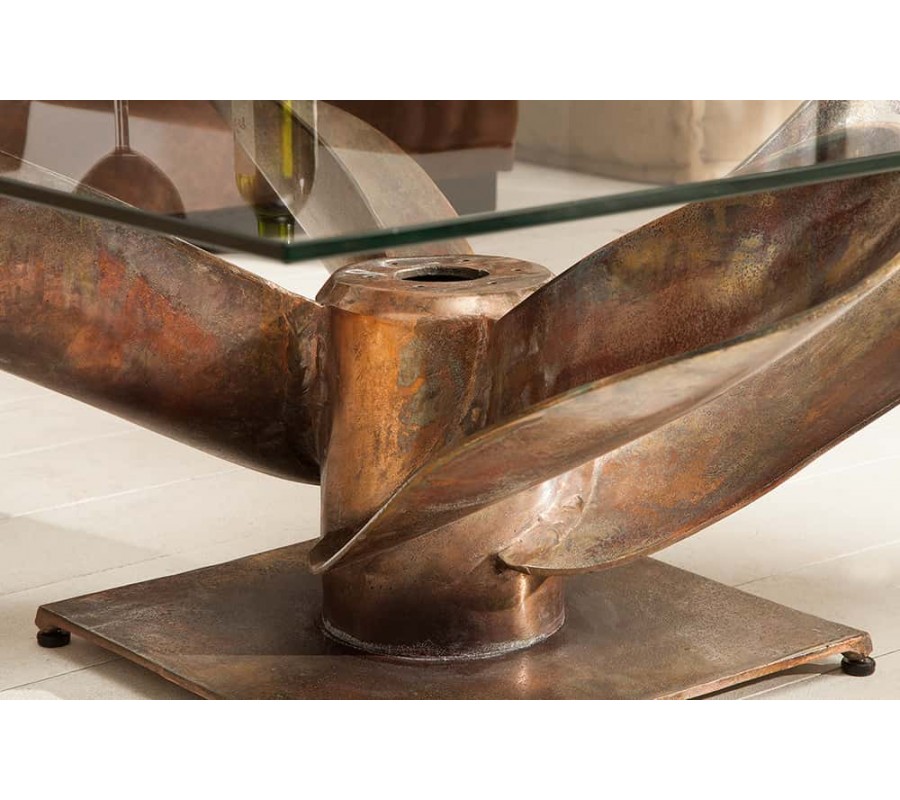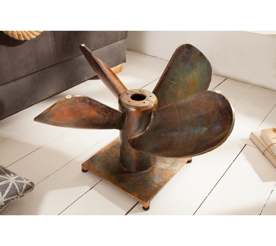 Kovový konferenčný stolík má svoje telo v tvare lodnej skrutky. Jeho telo je vyrobené z kovu s povrchovou úpravou v antickej medenej farbe. Vrch stolíka je vybavený štvorcovou doskou z temperovaného bezpečnostného skla, ktoré má po svojich okrajoch fazetu. Stolík sa vďaka svojmu tvaru hodí do barov a priestorov vybavených námorníckou a cestovateľskou tematikou. Veľmi vhodnými doplnkami sú rôzne napodobeniny rybárskych sieti či dekorácie z hrubého námorníckeho lana používaného na starých lodiach v prírodných farbách.