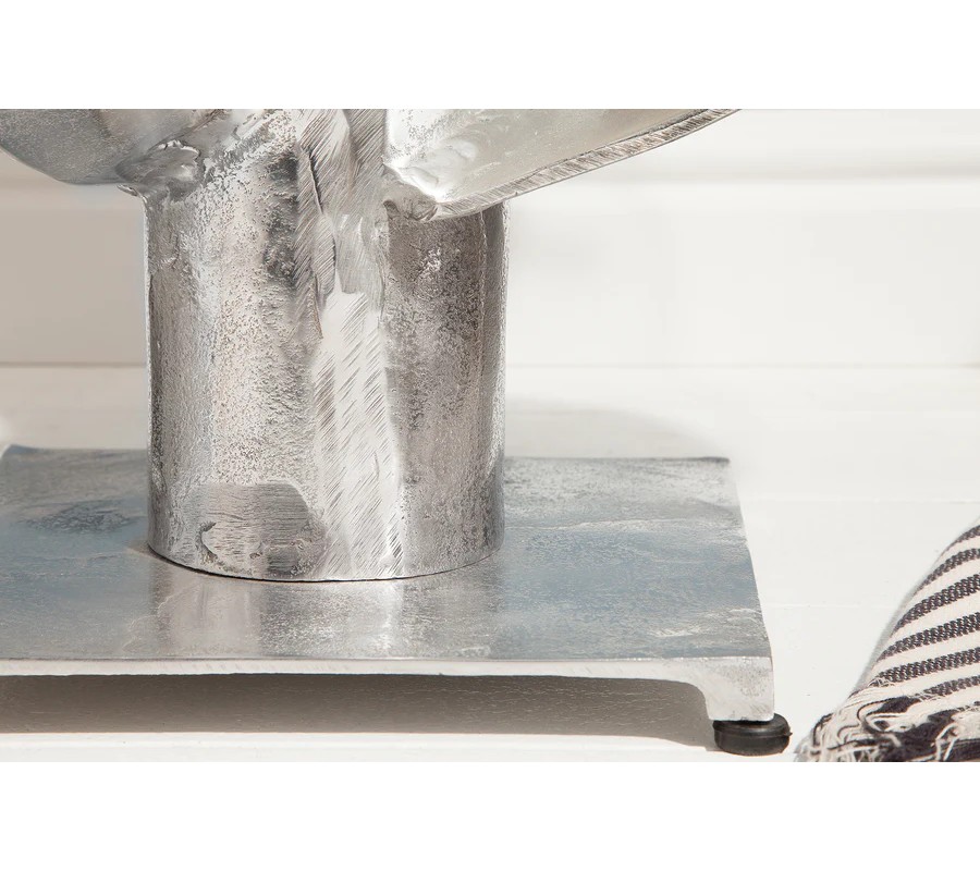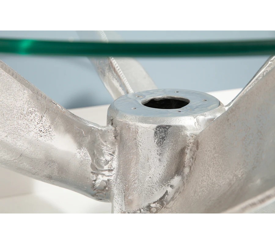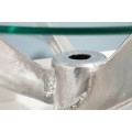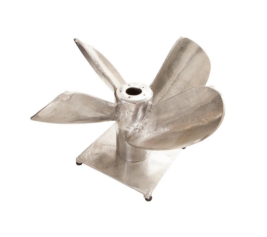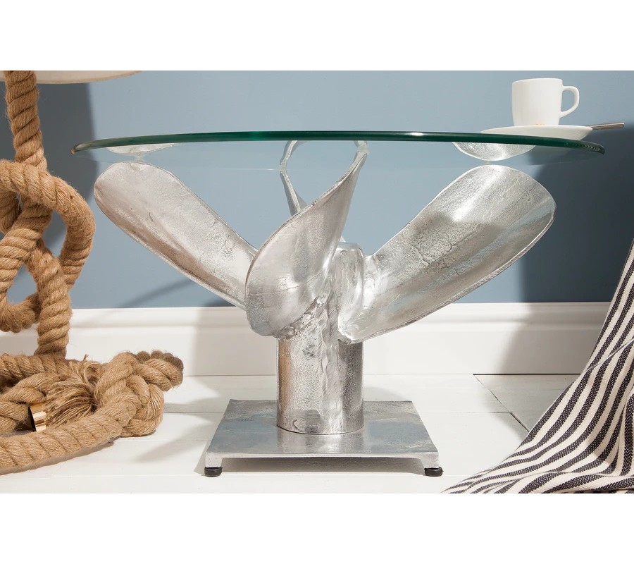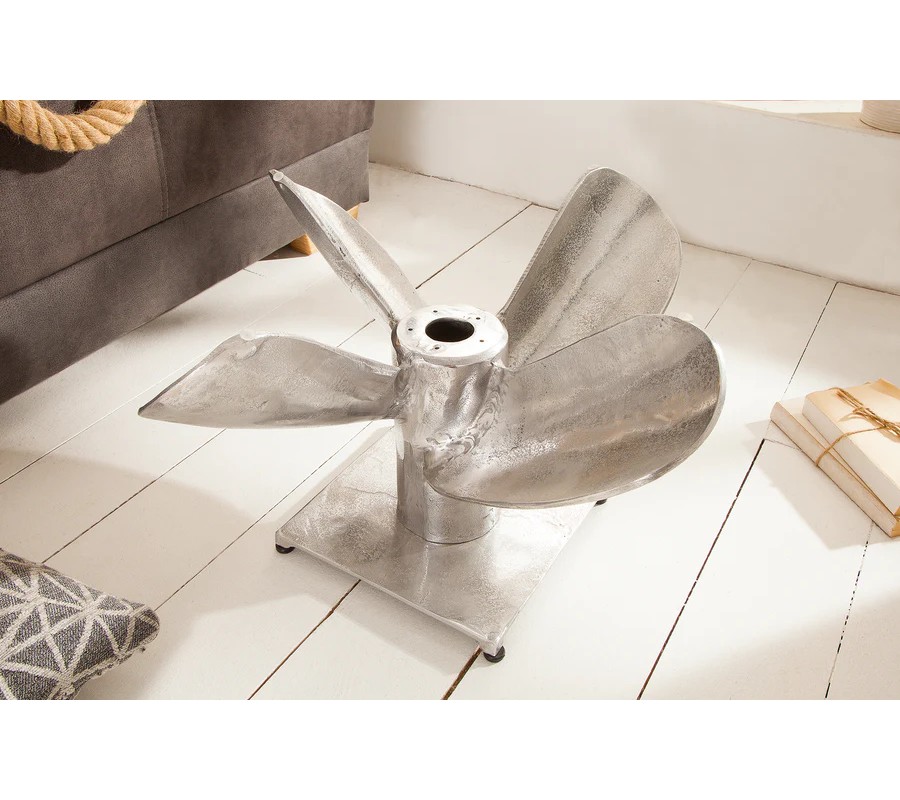 Štýlový koloniálny okrúhly konferenčný stolík Helice v striebornej farbe v podobe lodnej vrtule s industriálnym nádychom 60 cm