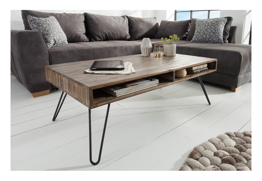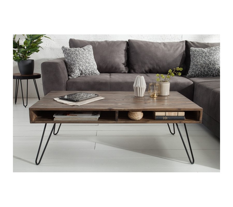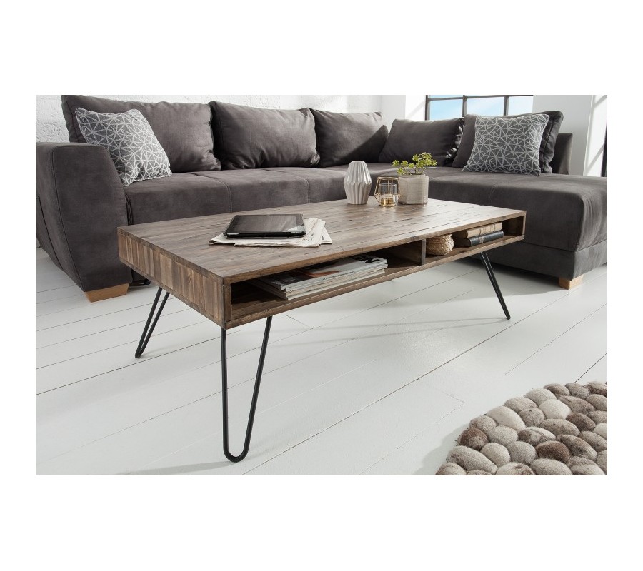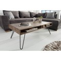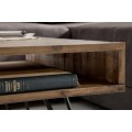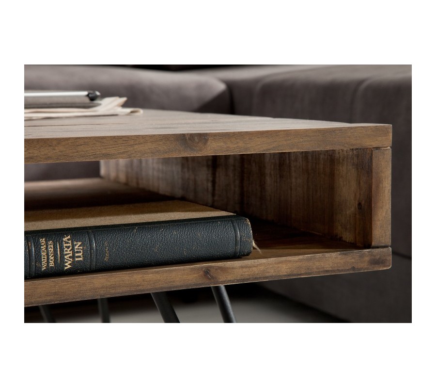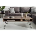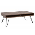 Jedinečný konferenčný stolík z našej dizajnovej kolekcie Leeds vašej obývačke dodá štýlový retro vzhľad! Jeho zaujímavé prevedenie spestrí vaše priestory a vďaka univerzálnej prírodnej farbe dreva so sivým nádychom je ľahko kombinovateľný a hodí sa skutočne všade. Konferenčný stolík Leeds disponuje dvomi praktickými poličkami na uskladnenie menších predmetov, časopisov či kníh. Vyrobený je z masívneho agátového dreva a s čiernymi kovovými nohami vytvára nadčasovú kombináciu, ktorá v sebe nesie znaky retro či industriálneho štýlu. Pre dokonalý dojem odporúčame doladenie industriálnymi doplnkami či výraznejším farebným kúskom, napríklad kobercom či dekoráciou na stenu.