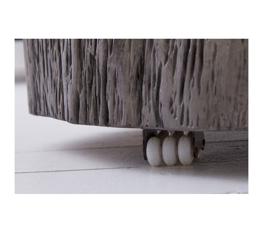 Jedinečný a unikátny konferenčný stolík Carlotta je zaujímavý najmä vďaka svojmu naturálnemu vzhľadu a tvaru pňa stromu. Je vyrobený z masívneho akáciového dreva v tvare kmeňa a jeho sivé prevedenie pôsobí dizajnovo a nadčasovo. Skvelo vynikne v industriálne či alternatívne zariadených priestoroch, ktoré potrebujú oživiť. Vďaka univerzálnej sivej je ľahko kombinovateľný, ideálne zapadne do svetlejšieho interiéru v zemitých farbách. Vďaka masívnemu dreva a svojej váhe je stabilný. Konferenčný stolík Carlotta je taktiež veľmi praktický a vďaka kolieskam bude manipulácia komfortnejšia a jednoduchšia.