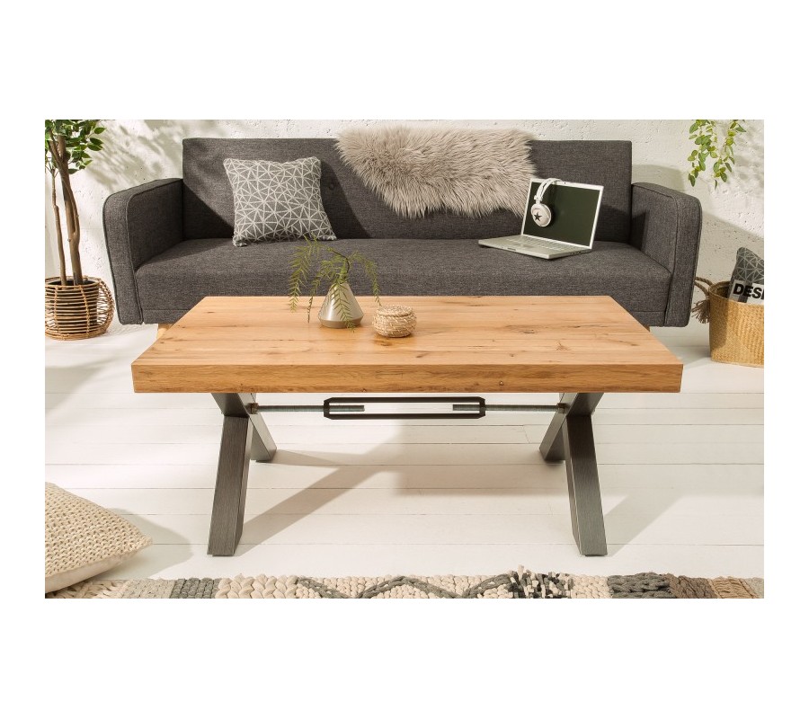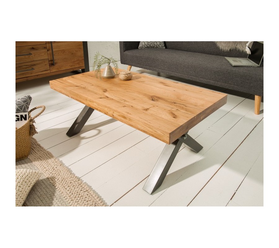 Štýlový konferenčný stolík Adin vynikne najmä v moderných a industriálne ladených interiéroch. Je vyrobený z kvalitného masívneho dreva z divokého dubu a jeho svetlohnedá farba pôsobí príjemne a vkusne. Na povrchu možno vidieť zaujímavú kresbu dreva, ktorá stolíku dodáva prírodný nádych. Celýž dizajn dopĺňajú mohutné kovové nohy v tvare x v sivej farbe, ktoré s farbou dreva príjemne ladia a vytvárajú nadčasovú kombináciu. Konferenčný stolík Adin sa dá ľahko kombinovať so širokou škálou farieb, najmä naturálnych odtieňov ako zelená, hnedá či žltá.