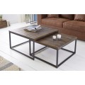 Jedinečný set štýlových stolíkov Elements zaujme každého, kto inklinuje k modernému či industriálnemu štýlu a jednoduchému dizajnu. Stolíky sú vyrobené z kvalitného masívneho agátového dreva s tmavou povrchovou úpravou. Kresba dreva a neopracovaný povrch vytvára naturálny dojem a v kombinácii s čiernymi kovovými nohami pôsobí kontrastne, čo dodáva stolíkom industriálny nádych. Vďaka ručnej výrobe, štruktúre dreva a jeho nerovnostiam je každý kúsok originál. Stolíky sa dajú umiestniť každý osobitne, alebo spolu ako set- jeden pod druhý. Tento štýlový set vynikne najmä v svetlých priestoroch v kombinácii s masívnym drevom.