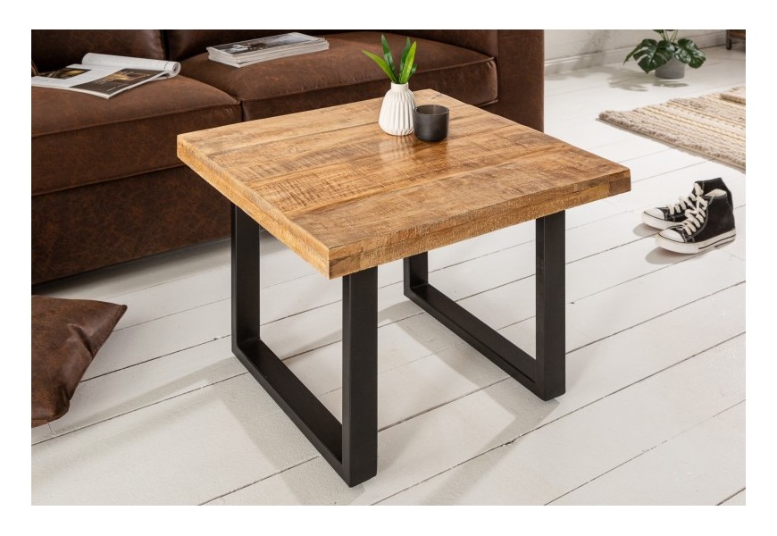 Industriálny dizajnový konferenčný stolík Steele Craft z mangového dreva štvorcového tvaru 60cm