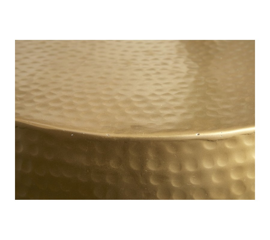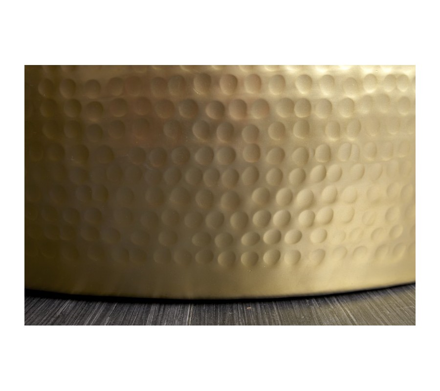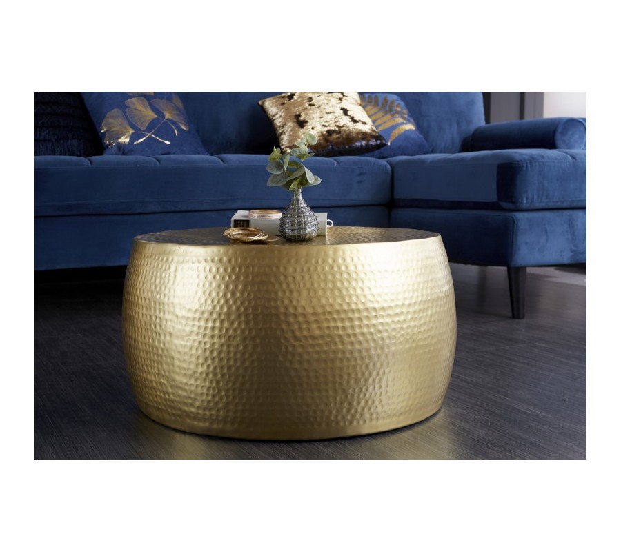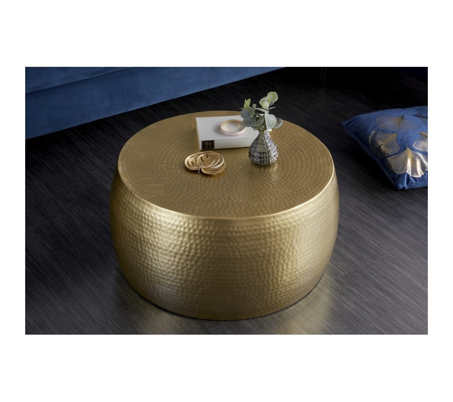 Štýlový konferenčný stolík Hammerblow Orient je jedinečným kúskom, ktorý sa vo vašej obývačke zaručene stane dominantou a upúta na prvý pohľad. Stolík je vyrobený z kovu a jeho kruhový tvar prispieva k špecifickému orientálne pôsobiacemu dizajnu. Povrch je zaujímavý vďaka jamkovému reliéfu, ktoré vytvára špecifický dizajn. Nesie sa v štýlovej zlatej farbe, vďaka ktorej skvelo zapadne aj do art-deco či orientálne ladených interiérov. Vynikne v dizajnových, svetlejšie i tmavšie ladených priestoroch v kombinácii so zlatými doplnkami či dekoráciami vo výraznejších farbách ako je modrá či zelená.