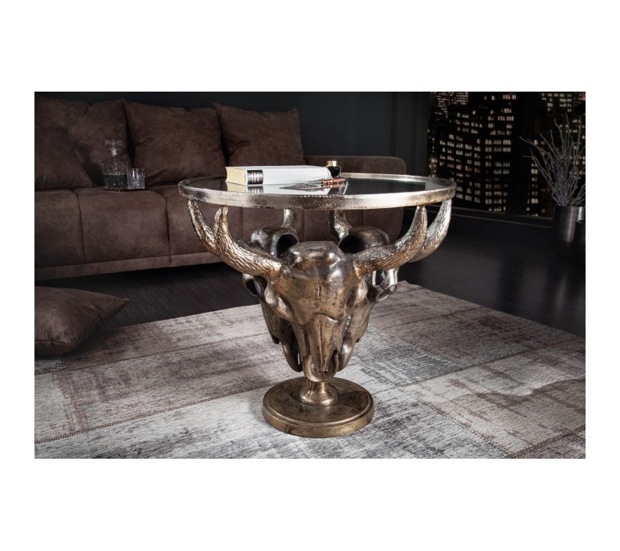 Industriálny konferenčný stolík s motívom býčích hláv bronzový 56cm