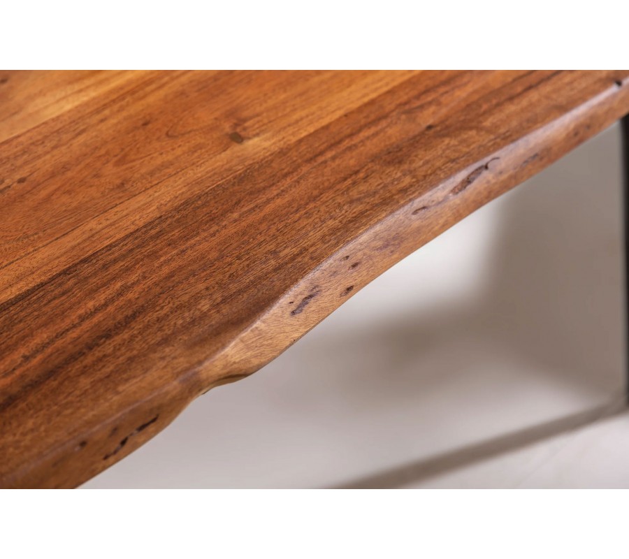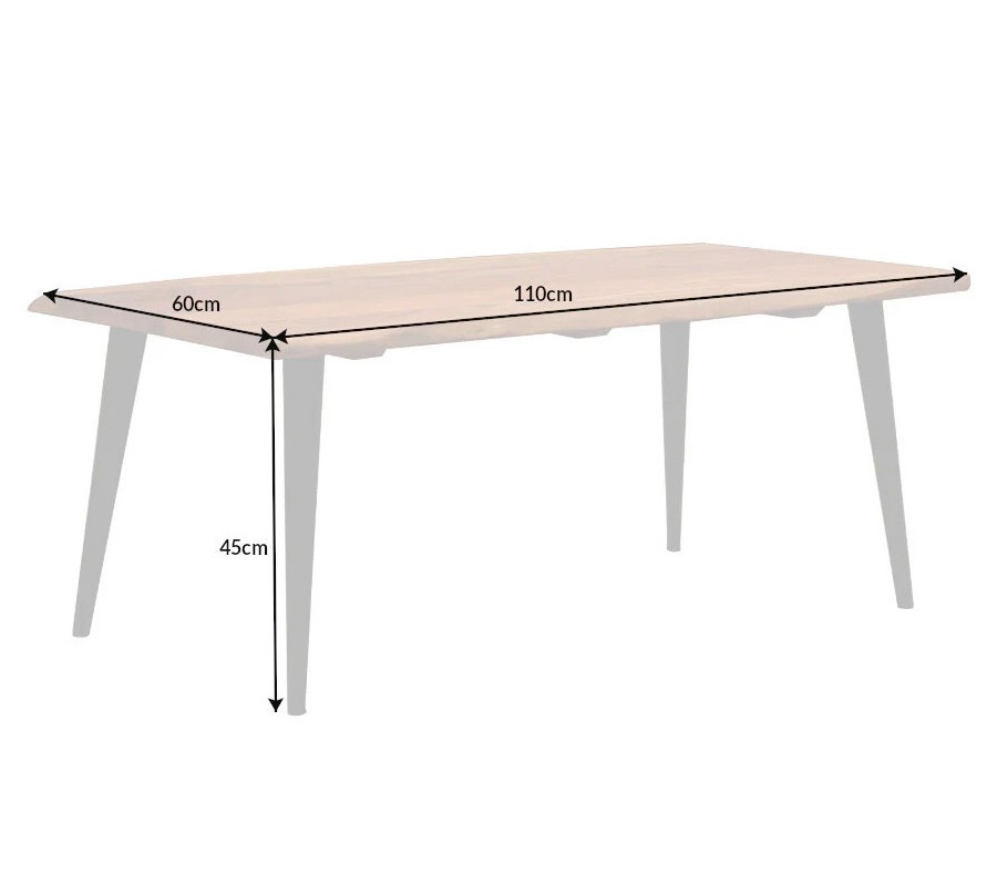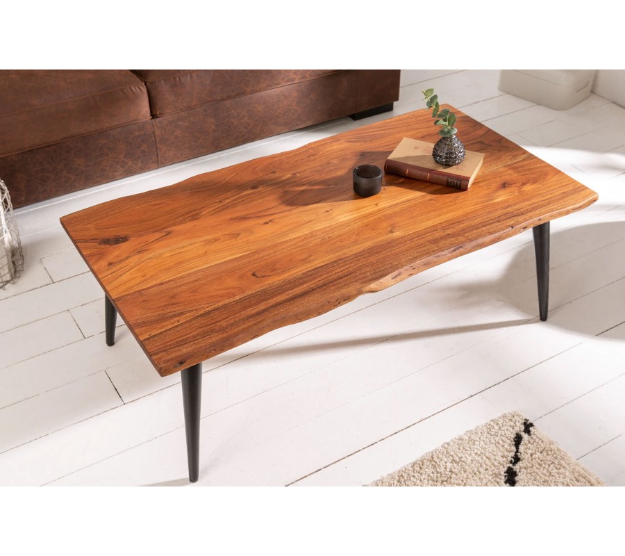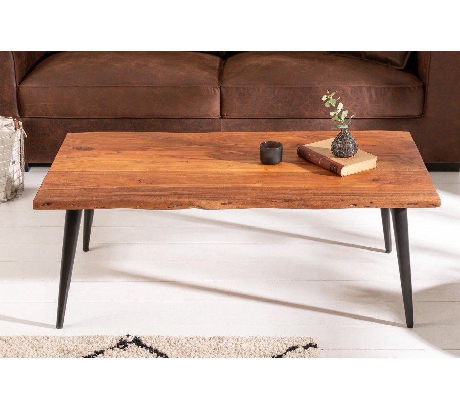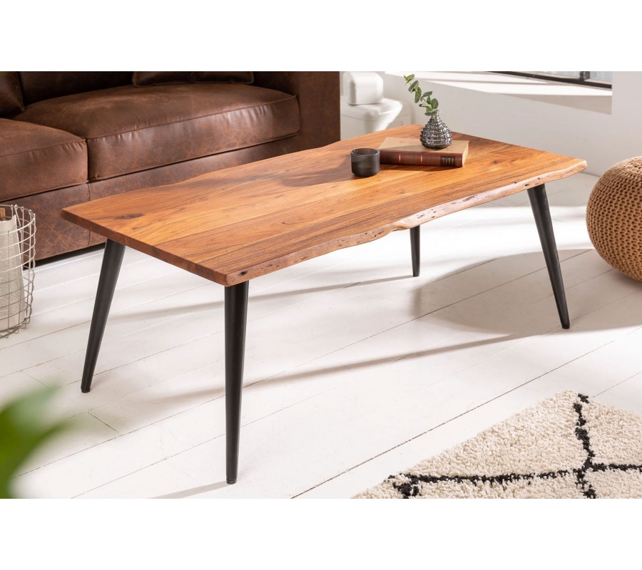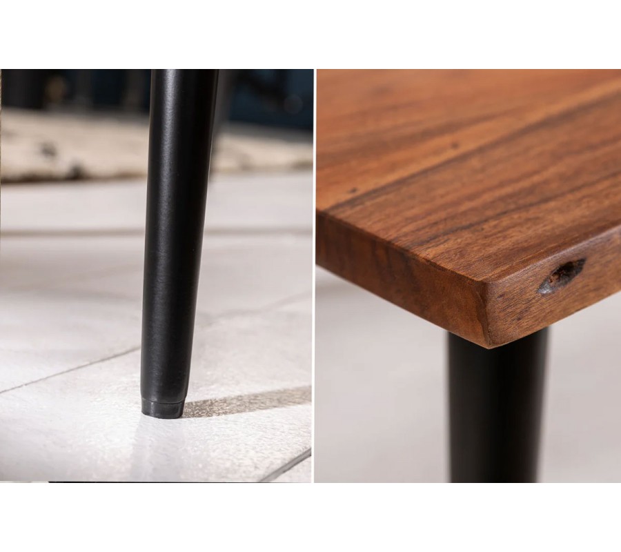 Dizajnový konferenčný stolík Tacoma je štýlovým a univerzálnym kúskom, ktorý vďaka svojmu jednoduchému dizajnu zapadne skutočne kamkoľvek. Je vyrobený z kvalitného masívneho akáciového dreva, ktoré vytvára zaujímavý kontrast s čiernymi kovovými nohami. Na povrchu dreva možno vidieť zaujímavú štruktúru dreva, ktorá do vášho domova vnesie krásny prírodný nádych. Kombinácia masívu a kovových nôh dodáva stolíku štýlový industriálny vzhľad. Konferenčný stolík Tacoma sa dá skvelo doplniť rôznymi kovovými dekoráciami, sedačkou v naturálnych odtieňoch alebo kobercom s nízkym vlasom..