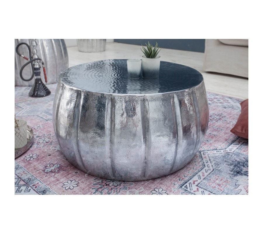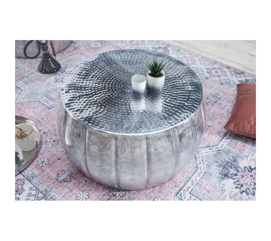 Orientálny okrúhly konferenčný stolík Adassil striebornej farby 65cm