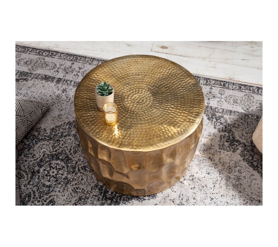 Mimoriadne dekoratívny vzhľad a organický dizajn konferenčného stolíka Siliguri sa stane šperkom každého moderného priestoru. Okrem luxusného farebného prevedenia zaujme najmä výrazným kladivkovým povrchom, ktorý je výsledkom ručnej výroby, vďaka čomu sa každý kus zo série konferenčných stolíkov Siliguri stáva jedinečným. Konferenčný stolík Siliguri môžete umiestniť do množstva štýlových interiérov. Skvele vynikne s modernými, orientálnymi a dokonca aj obľúbenými prvkami Art-deco štýlu. Luxusný zlatý odtieň hliníkovej konštrukcie sa stane dokonalým doplnením zamatovým poťahov čalúneného nábytku v neutrálnych odtieňoch sivej či výrazných prevedeniach modrej, zelenej a červenej farby.
