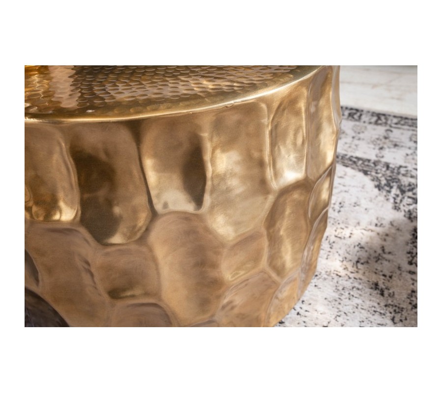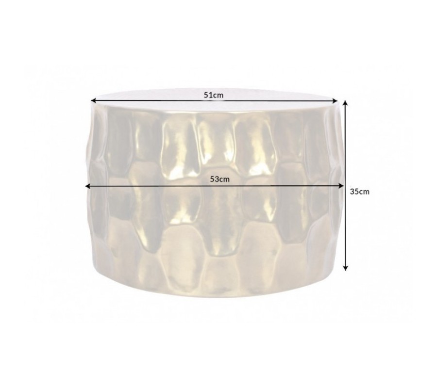 Moderný okrúhly konferenčný stolík Siliguri s kladivkovým povrchom v zlatom prevedení 53cm