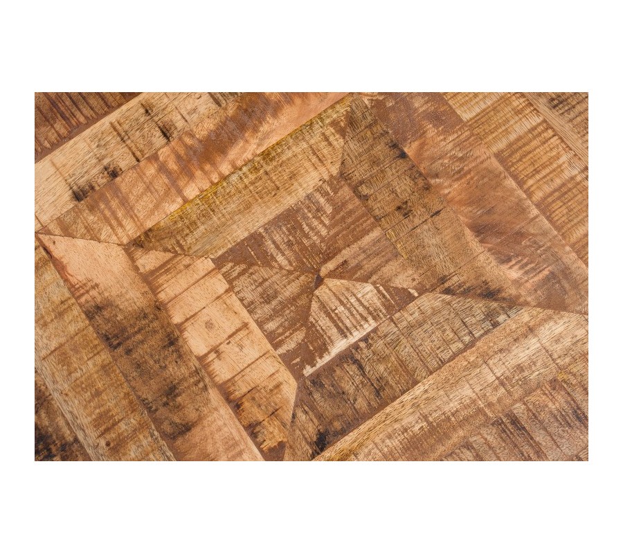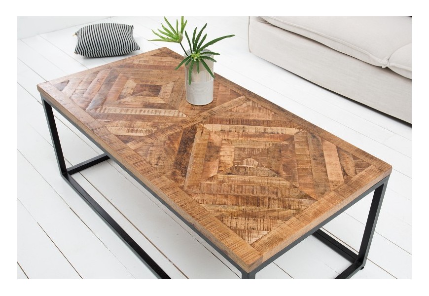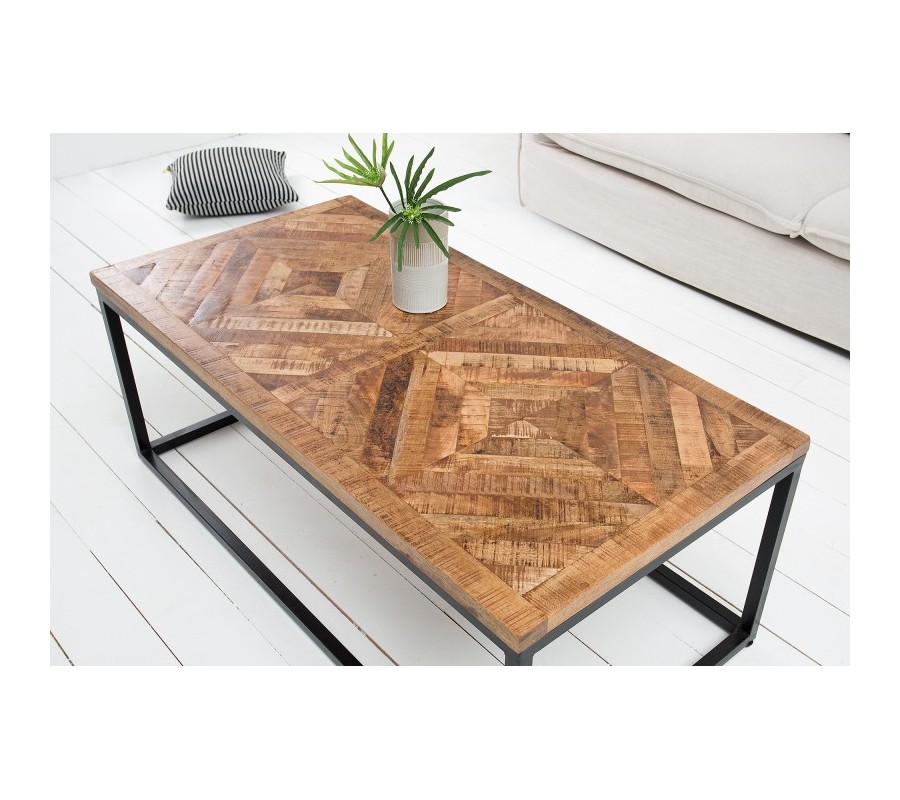 Štýlový konferenčný stolík z našej kolekcie industriálneho nábytku Frida je zaujímavým kúskom do moderných obývačiek. Stolík obdĺžnikového tvaru je vyrobený z masívneho mangového dreva hnedej farby, ktoré dopĺňa čierna kovová konštrukcia. Zaujímavé geometrické obrazce na povrchu a viditeľná prirodzená kresba dreva dodávajú stolíku Frida osobitý nádych a vytvárajú jedinečný dizajn, ktorý rozžiari každý interiér. Pre dokonalý dojem odporúčame konferenčný stolík Frida doladiť do svetlých miestností zariadených masívnym nábytkom a doplniť dekoráciami z kovu.