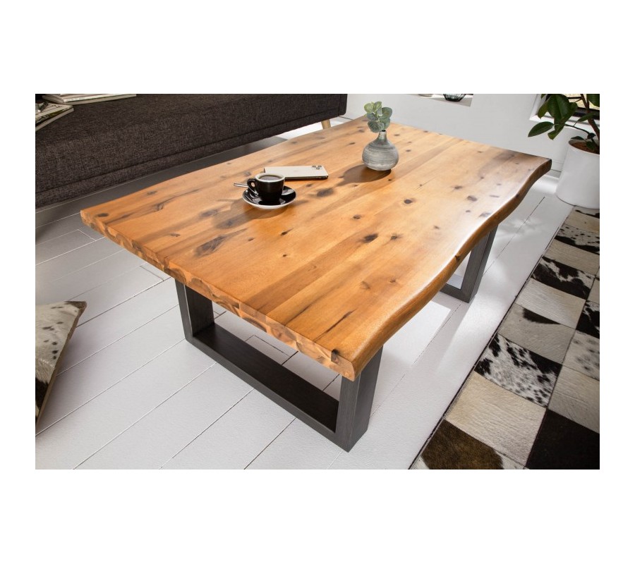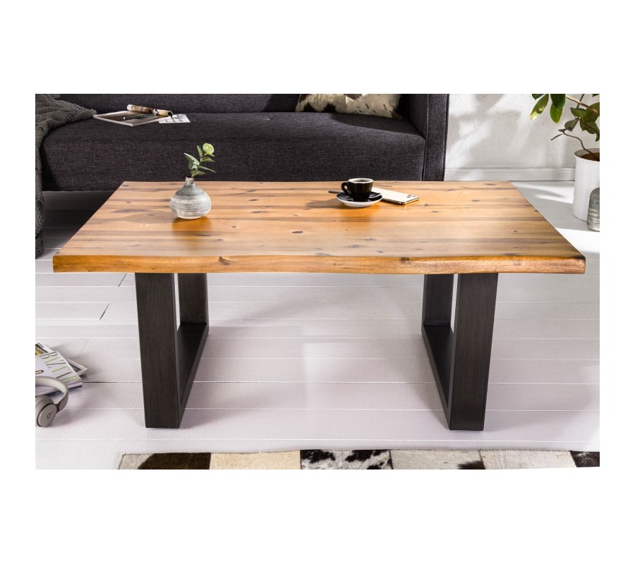 Industriálny masívny konferenčný stolík Forest s čiernymi kovovými nohami 110cm