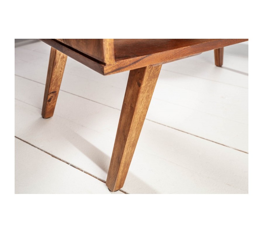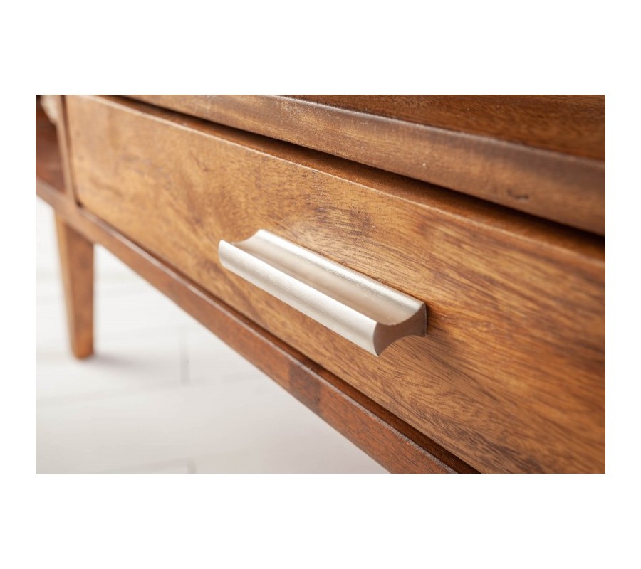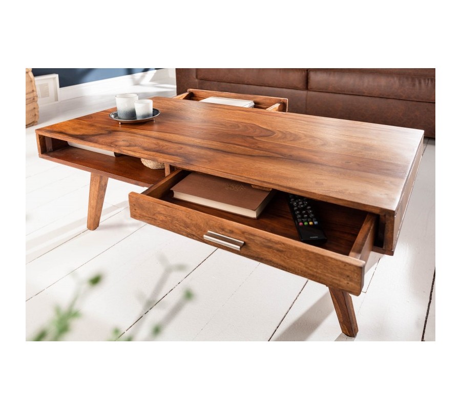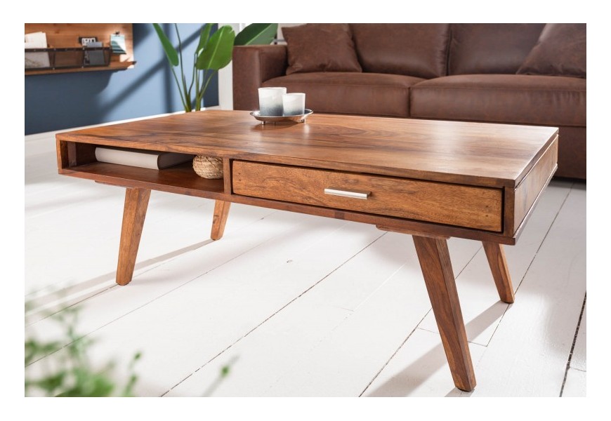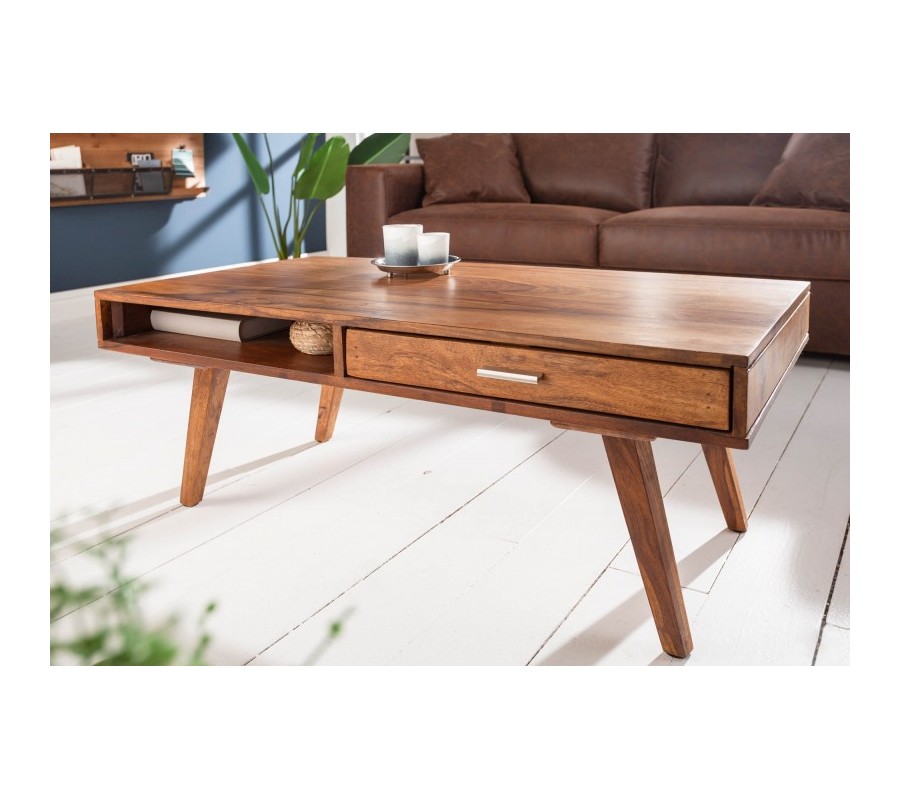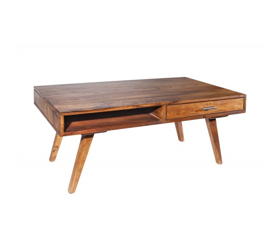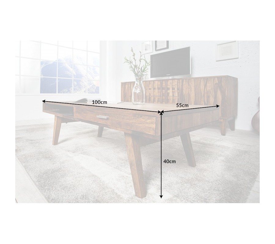 Retro konferenčný stolík Eden z masívneho dreva sheesham so zásuvkou a poličkou 100cm