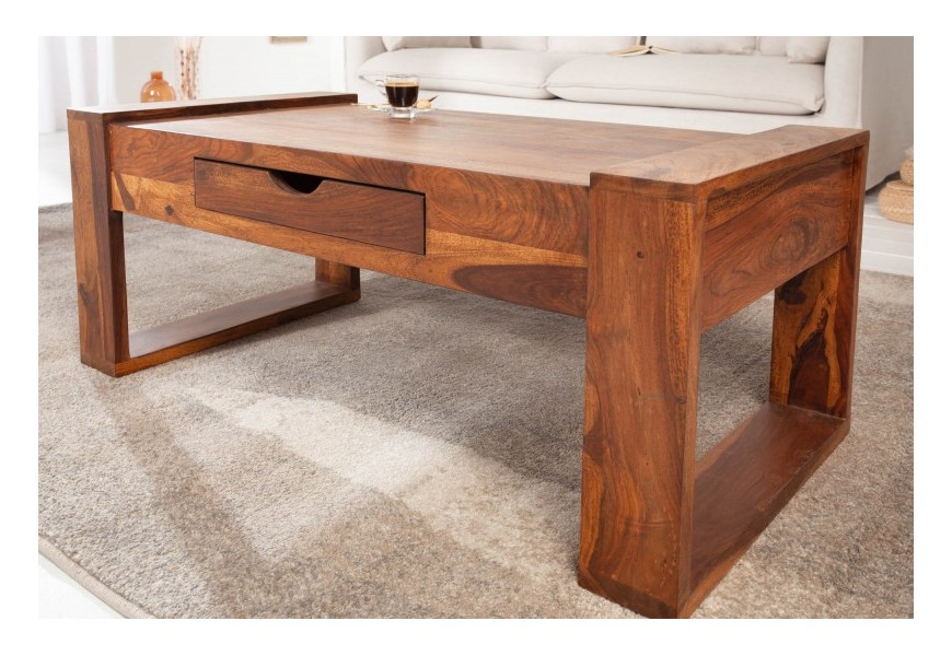 Masívny konferenčný stolík Sheesham hnedej farby 100cm