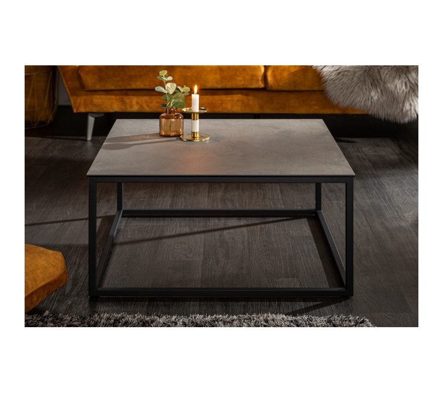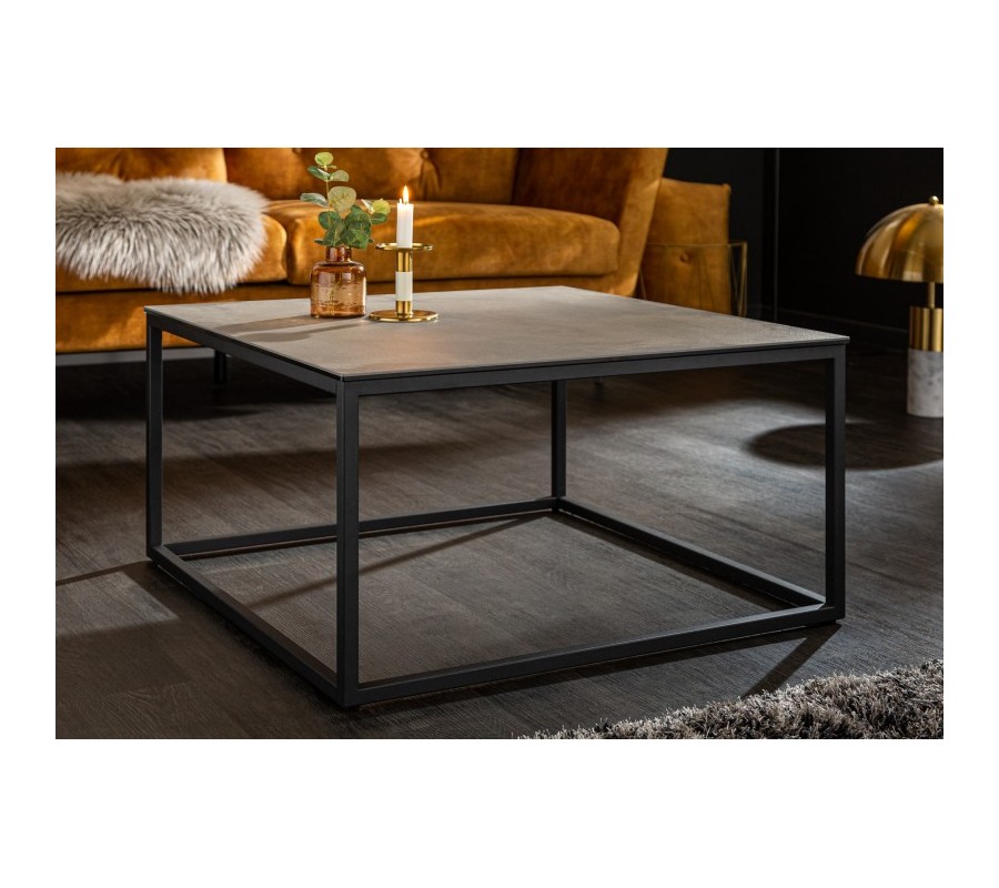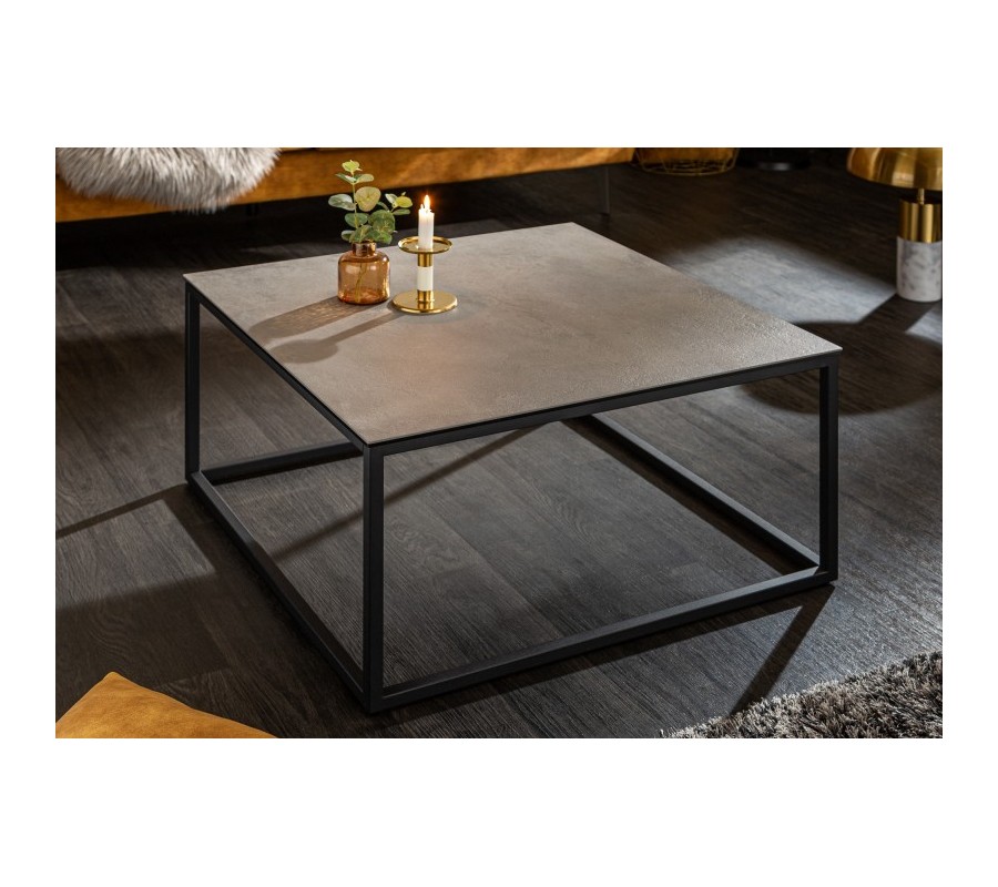 Industriálny konferenčný stolík Collabor s kovovou konštrukciou a keramickou doskou s betónovým efektom 75cm