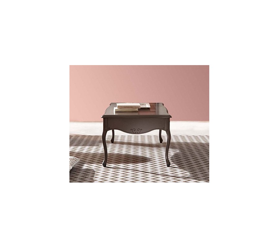 Luxusný rustikálny stolík z bukového masívu je exkluzívnym kusom nábytku. Bukový masív je chránený kvalitnou drevenou dyhou. Jeho jedinečný vzhľad je doplnený dizajnovými ornamentmi a jeho je podčiarknutý tvarom nožičiek. Tento rustikálny stolík je možné vďaka jeho variabilným rozmerom použiť či už ako konferenčný alebo príručný stolík. Výroba je možná v štyroch rôznych farebných prevedeniach a dvoch rôznych šírkach.