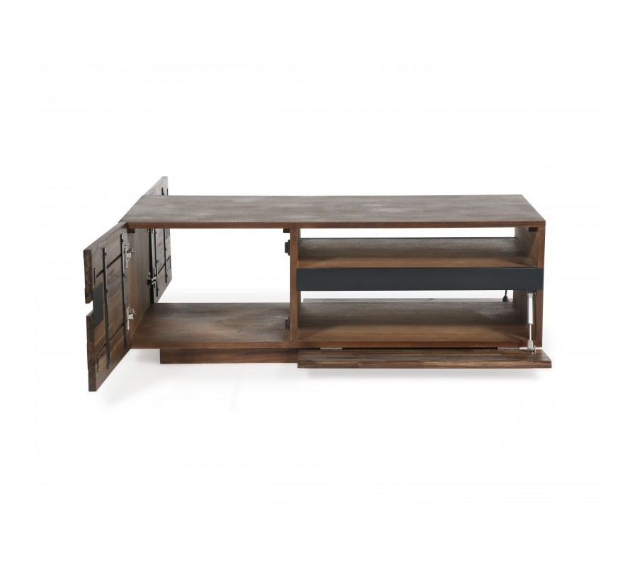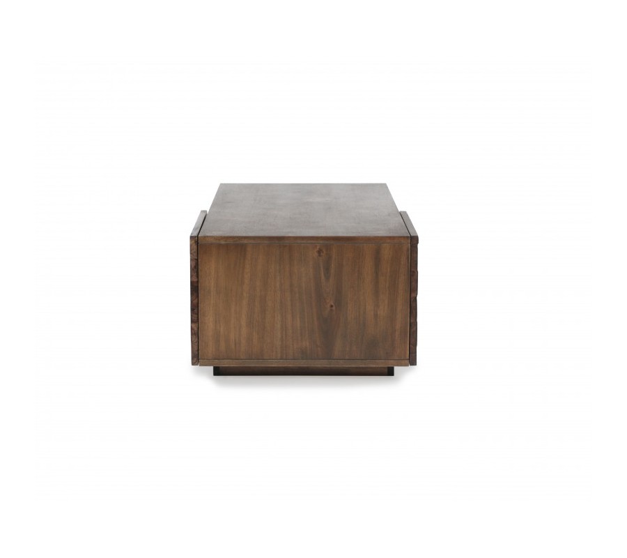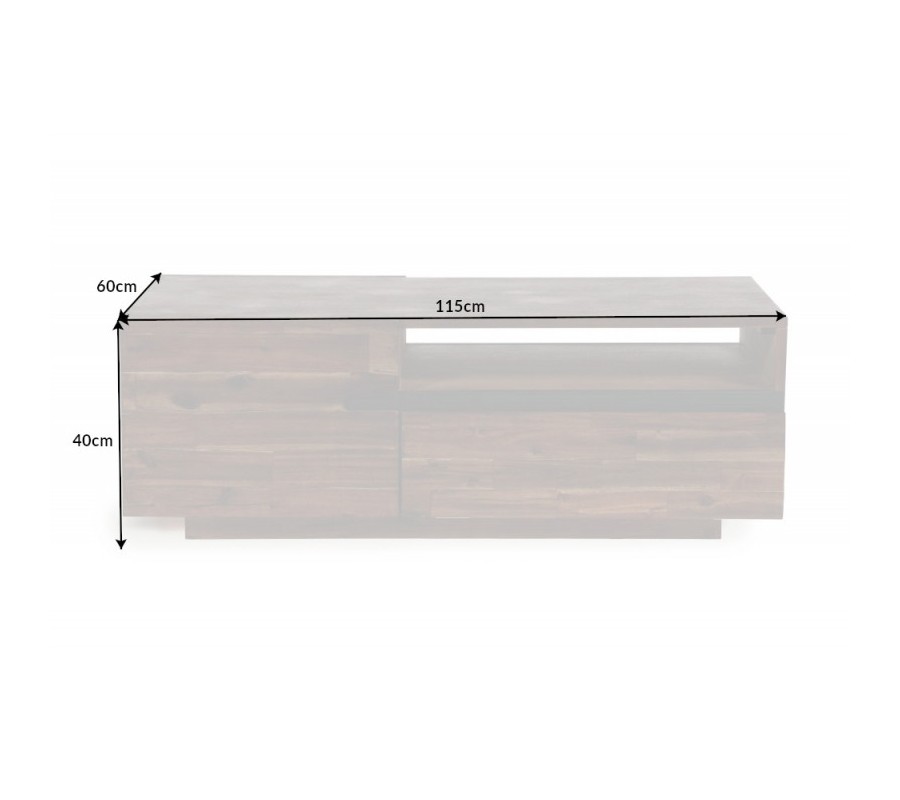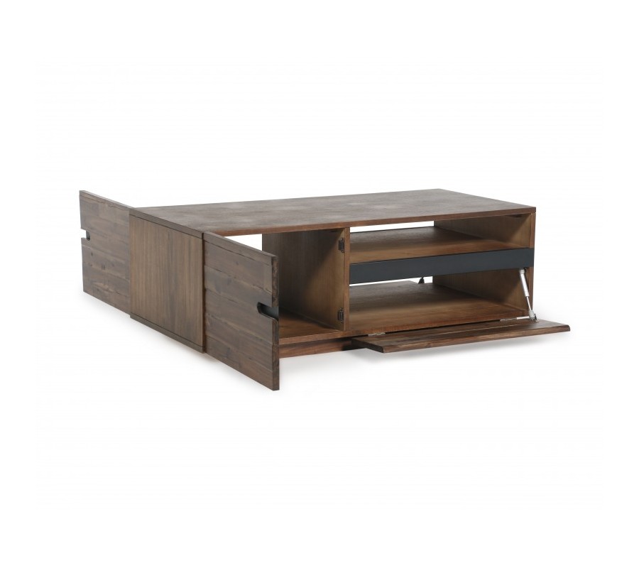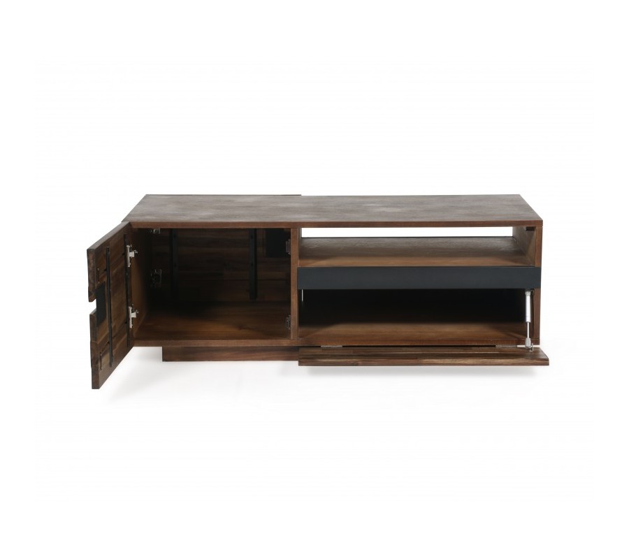 Moderný konferenčný stolík Alana z masívneho akáciového dreva s poličkami a dvierkami 115cm