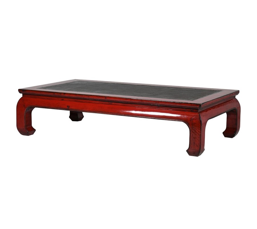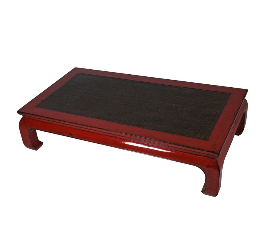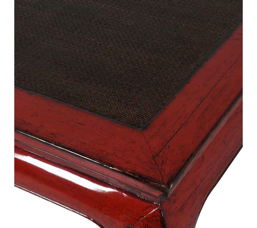 Vintage konferenčný stolík Kolorida z masívneho dreva a ratanu červenej farby 200cm