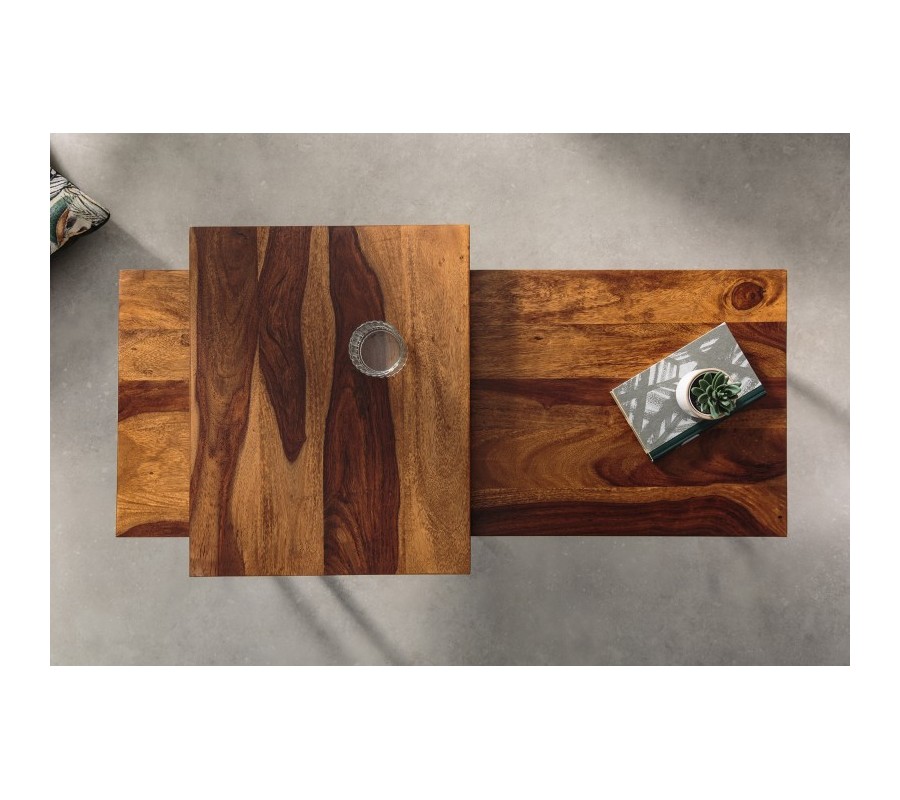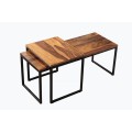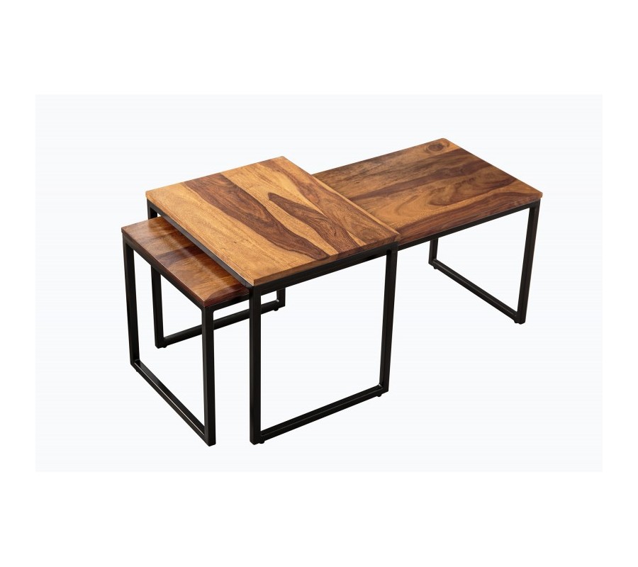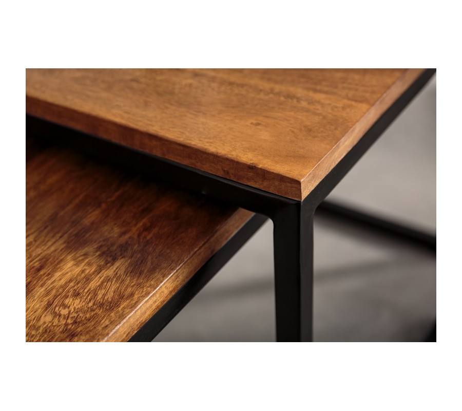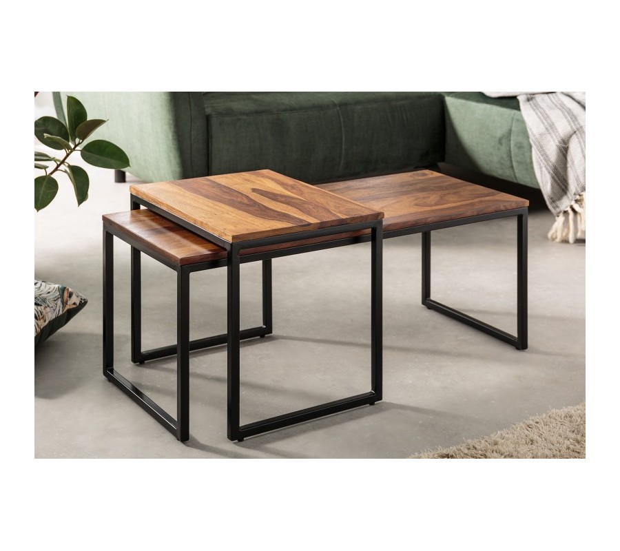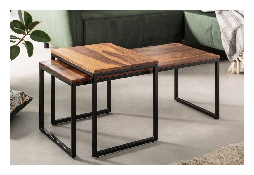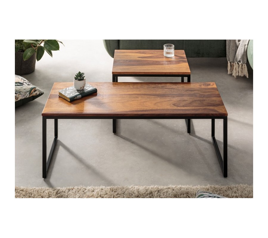 Set industriálnych obdĺžnikových konferenčných stolíkov Elements v prírodnej hnedej farbe s čiernou kovovou podstavou 100cm