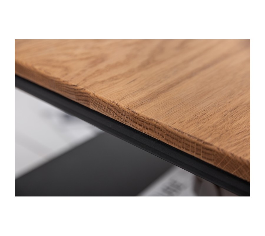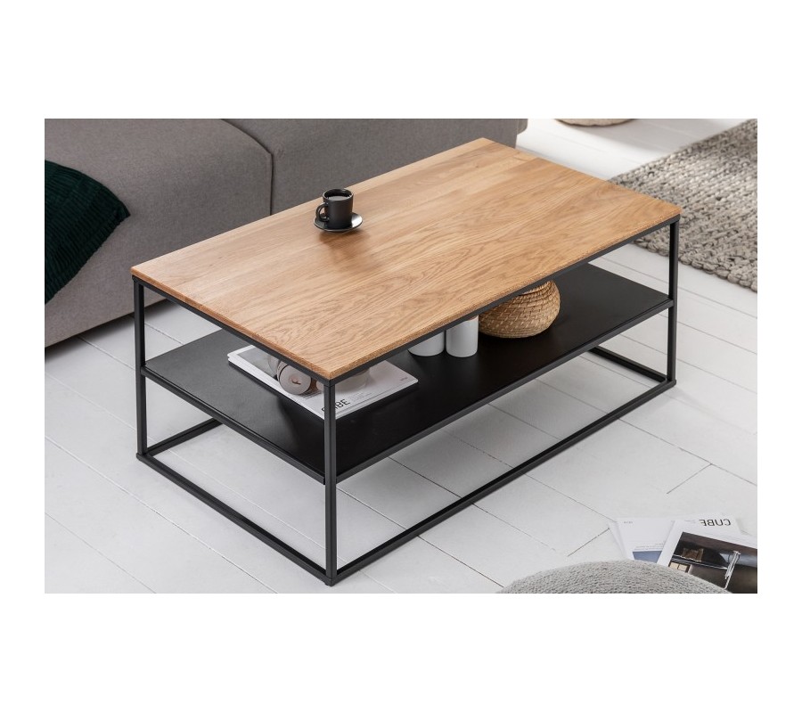 Štýlový stolík Westford určite zaujme kvalitou vrchnej obdĺžnikovej dosky, ktorá je vyrobená z dreveného dubového masívu. Drevená časť je upravená tak, aby sa zvýraznila jej prirodzená štruktúra. Čierna kovová konštrukcia pod samotnou doskou je priestranná a praktická s moderným nádychom, a tak môže slúžiť ako úložný priestor alebo aj ako kovová polička pre drobnosti akými sú magazíny, noviny, diaľkové ovládanie, menšie pletené košíky a podobne. Svojou jednoduchosťou je stolík vhodný nielen do industriálneho, ale napríklad aj do moderného interiéru, v ktorom je najlepšie stolík skombinovať so zamatovými sedačkami, a podobne kovovými a sklenenými dekoráciami.