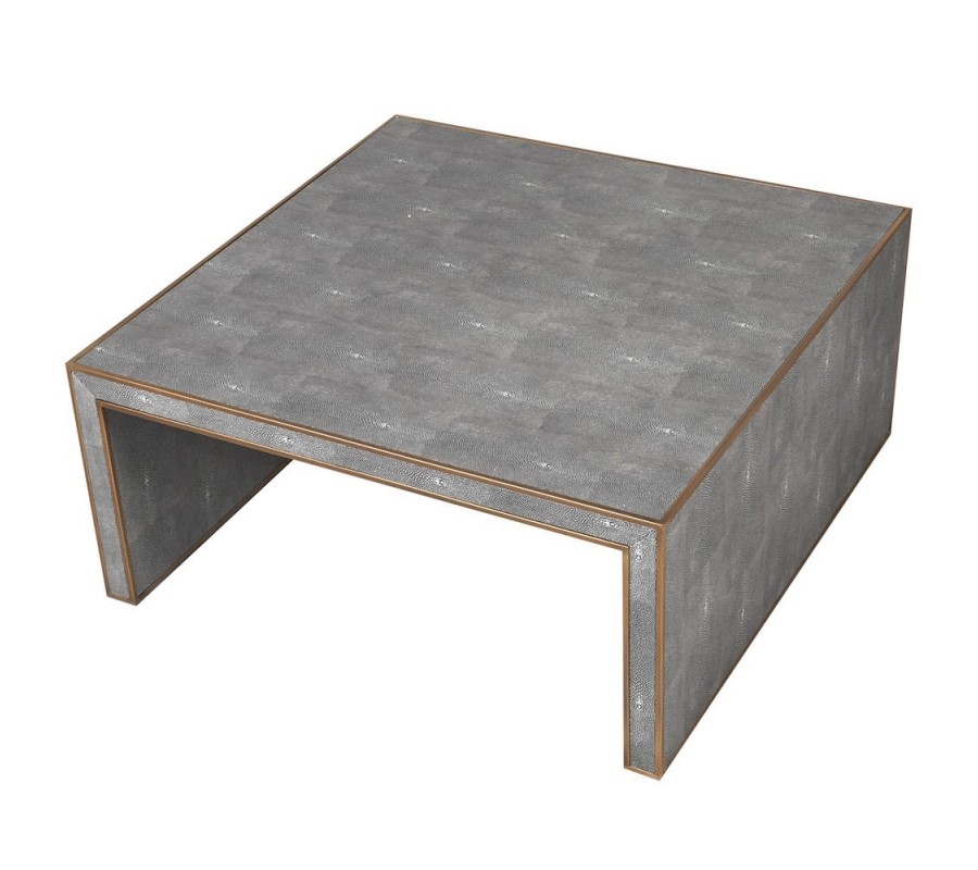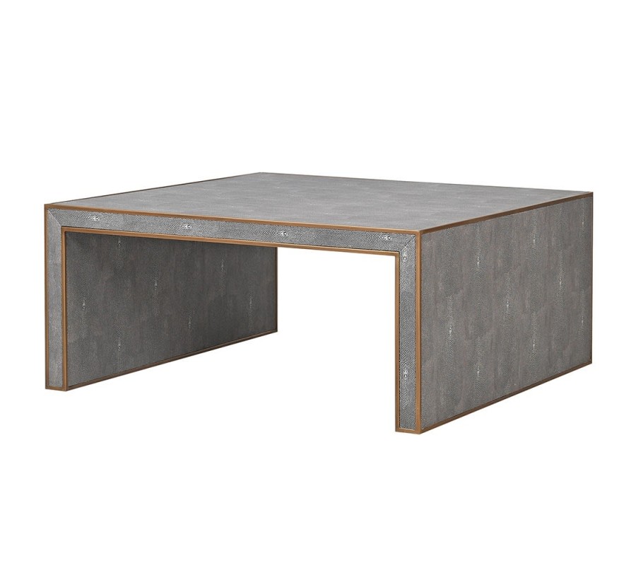 Art-deco štvorcový konferenčný stolík OTAWA s čalúnením zo sivej kože 100cm