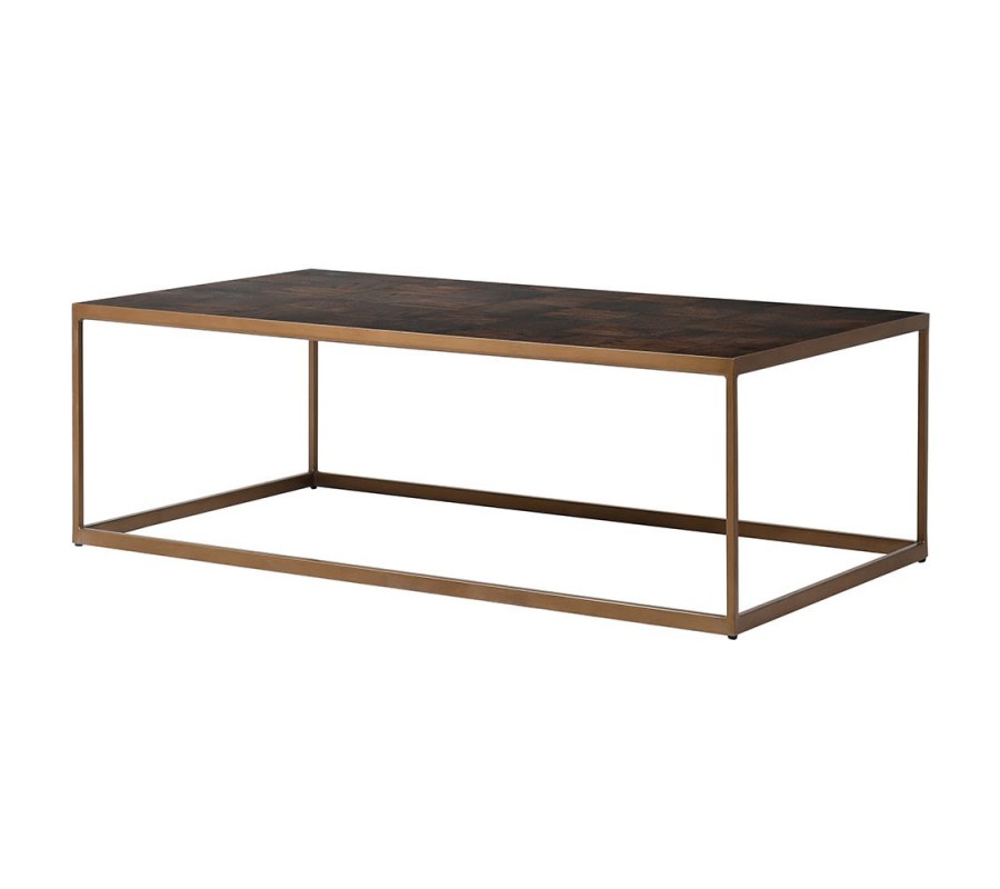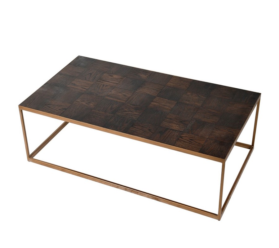 Art-deco luxusný konferenčný stolík Parketia z masívu so zlatou kovovou konštrukciou 135cm