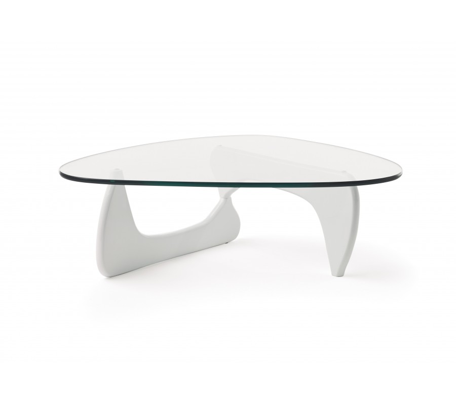 Moderný sklenený konferenčný stolík Dezina oblých tvarov s bielou podstavou 125cm
