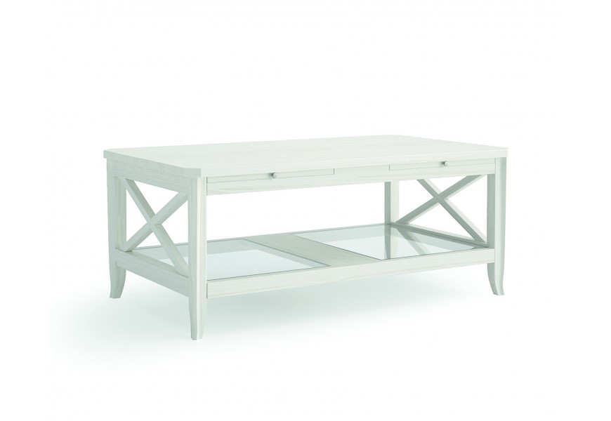 Luxusný masívny konferenčný stolík Genova s výsuvnou poličkou obdĺžnikový 117cm