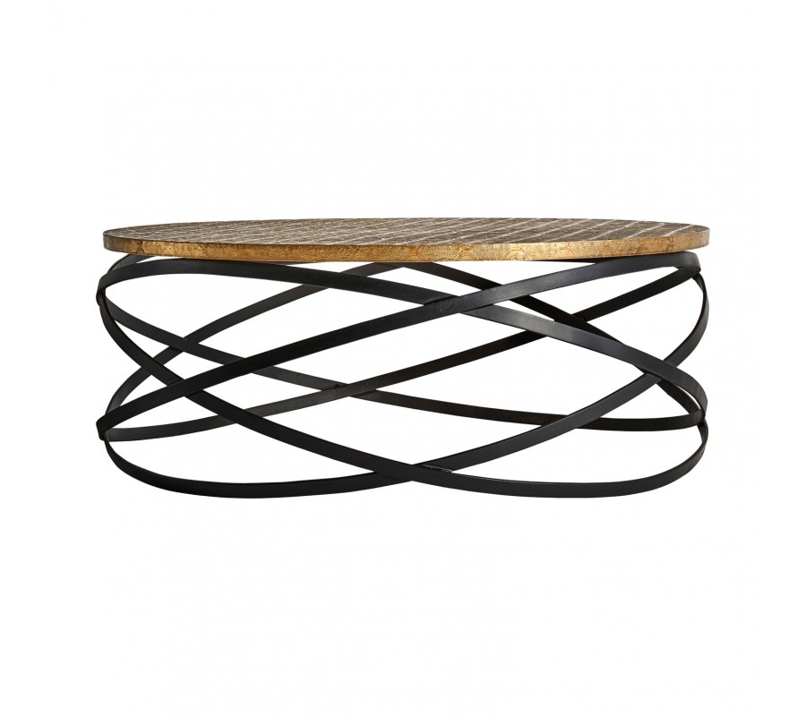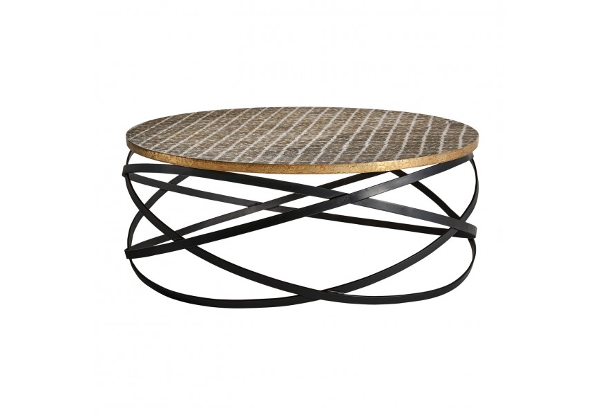 Art-deco okrúhly konferenčný stolík Nassau do obývačky s čiernou podstavou a zlatou povrchovou doskou 100cm