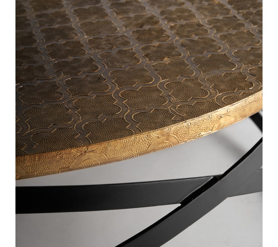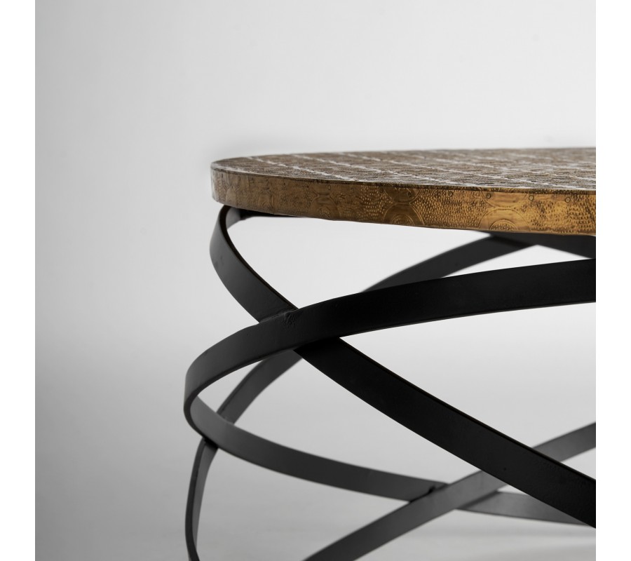 Jedinečný konferenčný stolík Nassau už na prvý pohľad zaujme svojím dizajnovým prevedením. Tvorí ho povrchová doska kruhového tvaru nesúca sa v zlatej farbe, a čierna kovová konštrukcia vytvárajúca organický špirálovitý tvar. Kombinácia masívneho mangového dreva a kovu zabezpečujú prvotriednu kvalitu a nadčasový vzhľad s jemným art-deco nádychom. Ten je umocnený predošvetkým detailným ornamentálnym zdobením na povrchovej doske, ktoré vytvára zaujímavý vzor. Konferenčný stolík Nassau rozžiari a spríjemní priestory moderných obývačiek ale možno ho umiestniť aj do art-deco ladených kaviarní či čajovní. Vďaka industriálnemu nádychu kovovej konštrukcie nič nepokazíte ani doladením do industriálne zariadených priestorov. Vynikne najmä v kombinácii s nábytkom z masívneho dreva a s kovovými doplnkami vo výrazných farebných odtieňoch.