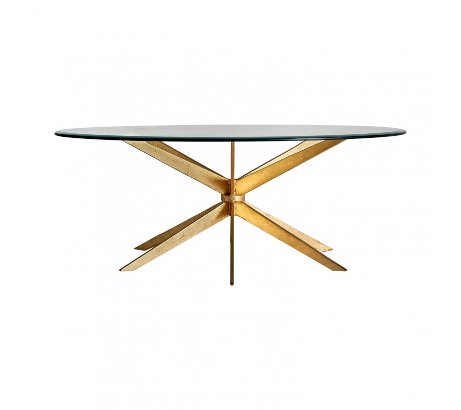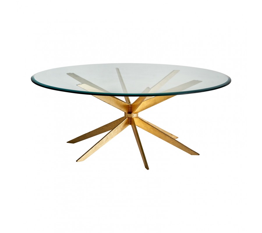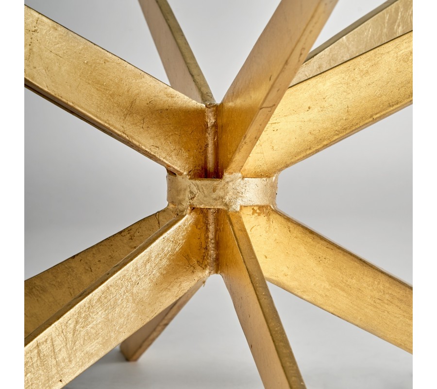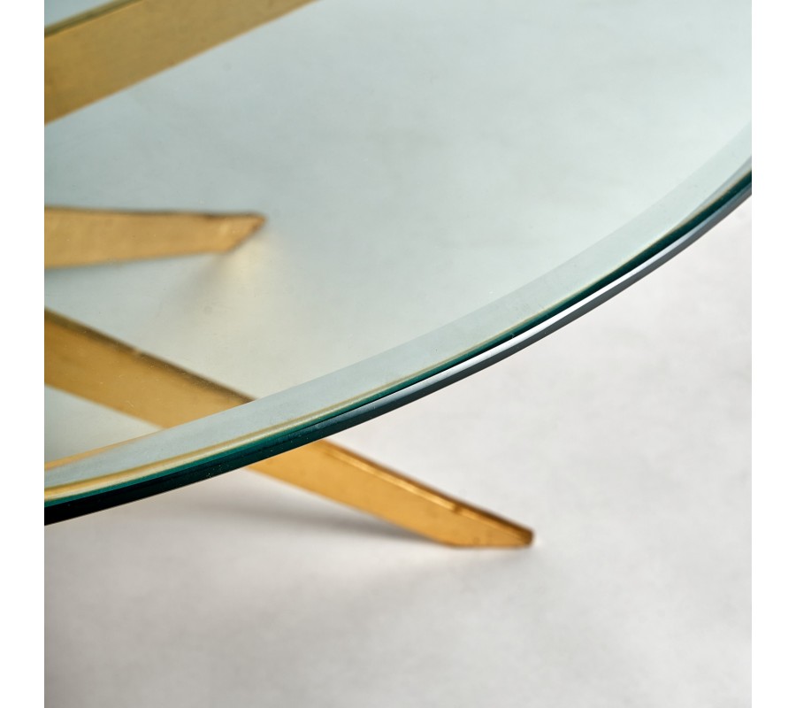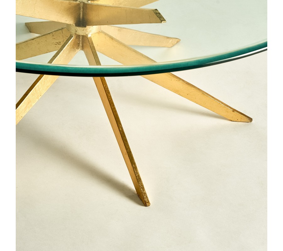 Unikány art-deco sklenený okrúhly konferenčný stolík Amuny so zlatou kovovou podstavou v tvare hviezdy 107cm