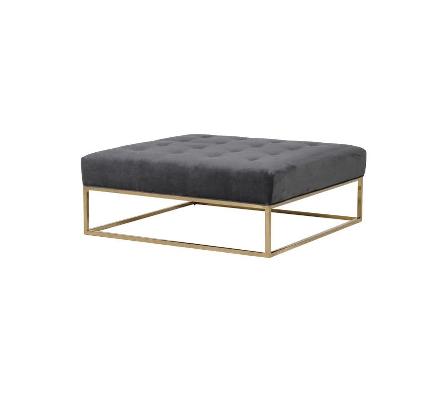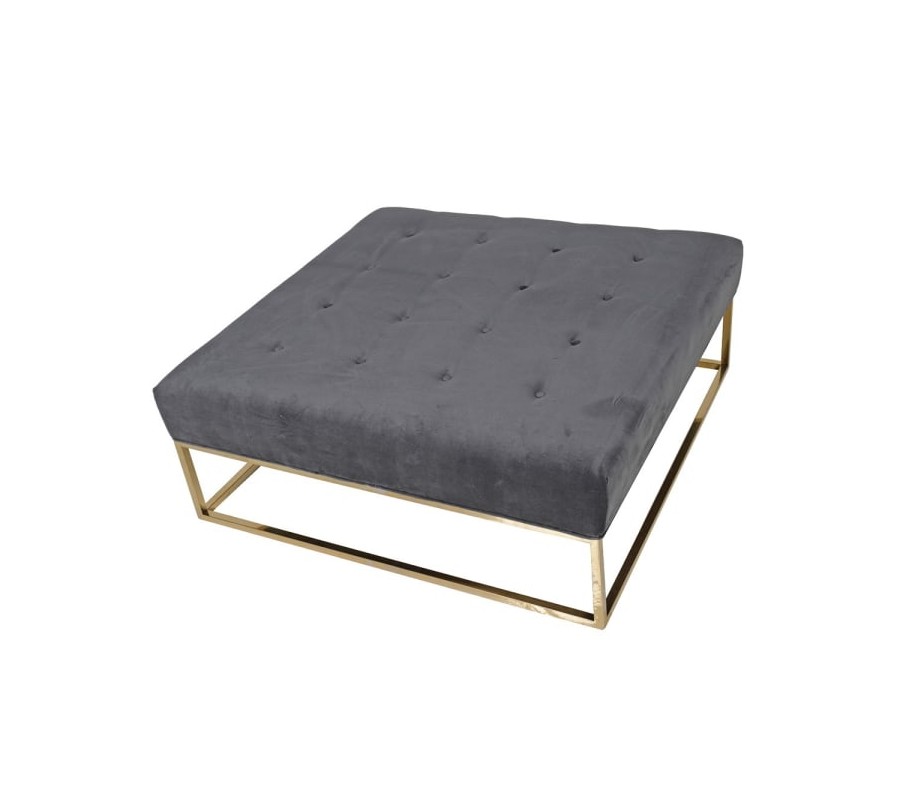 Luxusný konferenčný stolík Elegance je kúskom, ktorý elegantne doplní priestory moderných obývačiek, kaviarní či recepcii luxusných hotelov. Zaujme predovšetkým svojím jedinečným vzhľadom tvoreným čalúneným povrchom a zlatou kovovou konštrukciou. Vďala príjemnému čalúneniu je možno tento kúsok využiť aj ako taburetku alebo otoman. Poťah v tmavosivej farbe zdobí prešívanie typické pre štýl chesterfield, a spolu ao zlatou konštrukciou vytvára elegantný art-deco nádych. Konferenčný stolík Elegance vynikne predovšetkým v moderných a art-deco ladených interiéroch v kombinácii s čalúnenou sedačkou v podobnom farebnou odtieni a s výraznými doplnkami z kovu či skla.