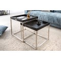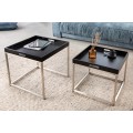 Dizajnový moderný set štvorcových konferenčných stolíkov Elements s pochrómovanými nohami a čiernymi povrchovými doskami 50cm