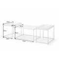 Potrebujete viac miesta na maškrty pri sledovaní televízie a oddychu? S našou sadou moderných konferenčných stolíkov Blancheta vás tento problém viac nebude trápiť. Sadu tvoria tri konferenčné stolíky, ktoré je možné rozložiť vedľa seba, ale aj zložiť, vytvoriť tak jeden stolík a ušetriť priestor. Konštrukcia stolíkov a nožičky sú z pochrómovaného kovu a skvelo dopĺňajú drevenú vrchnú lakovanú dosku v bielej farbe spolu s dvomi odnímateľnými bielymi podnosmi s držiakmi pre praktickejšie ochopenie. Podnosy budú šikovným pomocníkom aj pri príprave obľúbeného jedla, ktoré si chcete priniesť a vychutnať v pohodlí obývačky. Dva krajné stolíky, na ktorých sa nachádzajú odnímateľné podnosy, disponujú výškou 52cm, aby ich bolo možné jednoducho zložiť nad stredný stolík s výškou 42cm. Sadu stolíkov Blancheta si zamilujete vďaka jej univerzálnosti, využiteľnosti a praktickosti. Poslúži vám ako výborný priestranný sluha, ktorý svojim minimalistickým dizajnom doplní obývací priestor vášho domova.