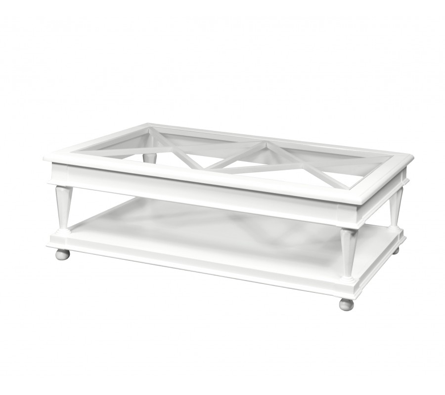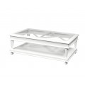 Luxusný biely rustikálny konferenčný stolík Belliene z masívu so sklenenou povrchovou doskou 132cm