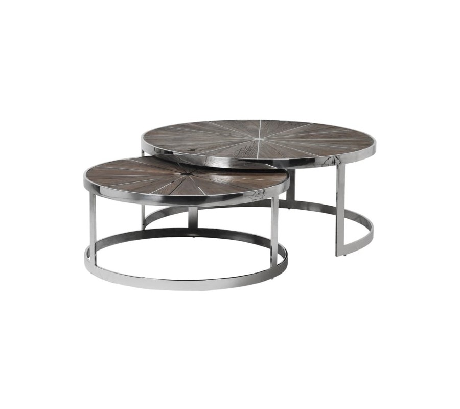 Set dvoch konferenčných stolíkov Furria vkusne doplní priestory moderných aj alternatívne ladených obývačiek. Svojím luxusným dizajnom si získa aj tých náročnejších, ktorí si potrpia na kvalitu a originalitu každého kúsku nábytku. Okrúhle stolíky disponujú povrchovou doskou z masívneho brestového dreva v prírodných tmavohnedých odtieňoch. Zdobí ju tiež nádherná kresba a štruktúra dreva, ktorá je doplnená o dizajnové geometrické členenie pripomínajúce slnko a jeho lúče. Kontrast k masívnej doske tvorí kovová chrómová konštrukcia navnadzujúca modernejší nádych. Vzniká tak jedinečný kúsok prepájajúci prvky rôznych štýlov, ktorý zaručene príjemne doladí vaše súkromné či firemné priestory. Vďaka rôznym veľkostiam jednotlivých stolíkov je možné ich zasunúť pod seba, vďaka čomu sú praktické a skladné. Set stolíkov Furria si svoje miesto nájde napríklad v obývačke v kombinácii s koženou sedačkou alebo na hotelovej recepcii, kde ho možno doplniť napríklad zrkadlom s masívnym rámom či sklenenou vázou s kvetmi.