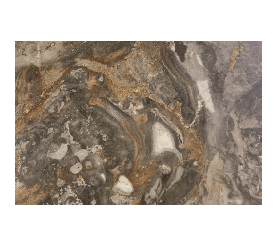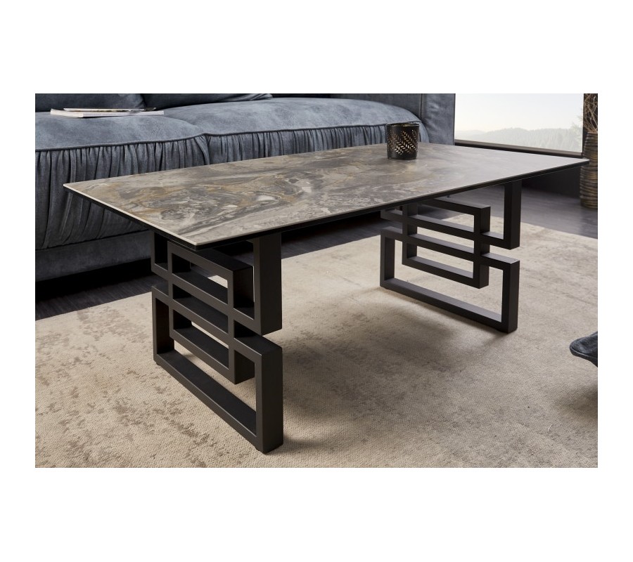 Luxusný art-deco obdĺžnikový konferenčný stolík Ariana v sivo hnedej farbe s mramorovým vzhľadom a kovovou podstavou 100cm