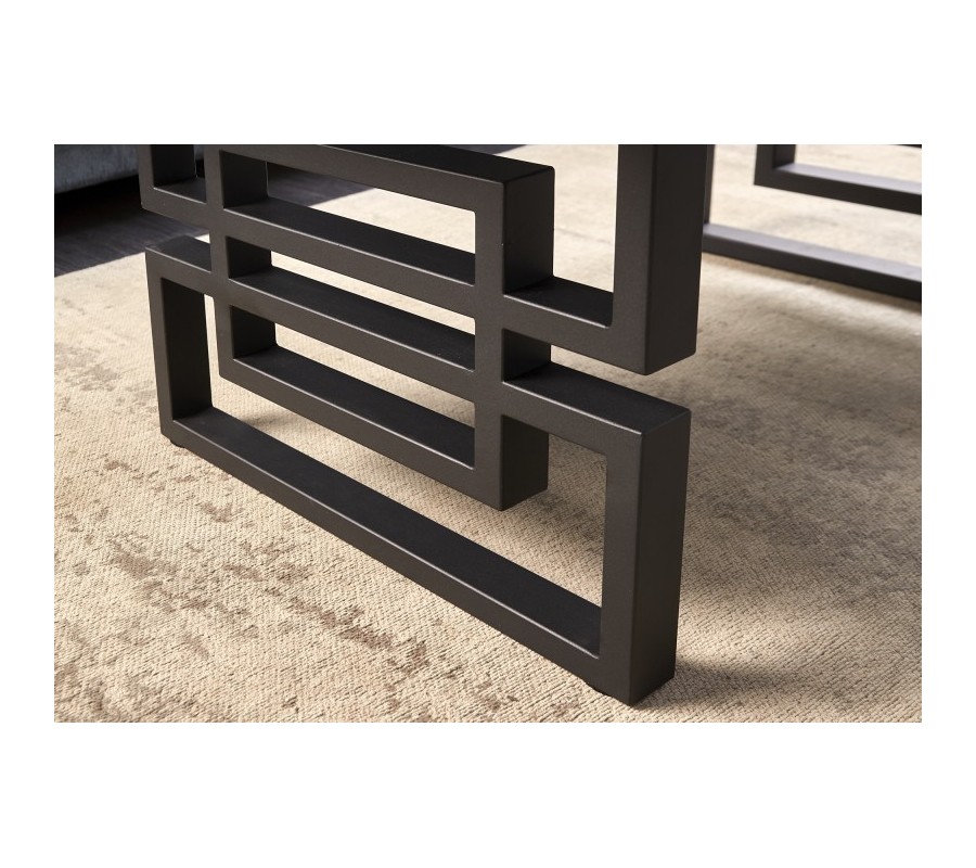 Art-deco konferenčný stolík Ariana v obdĺžnikovom tvare sa vyznačuje svojím dôrazom na geometrické tvary, svojím tmavým prevedením a dizajnovou vrchnou doskou. Na vrchnej doske chránenej bezpečnostným temperovaným sklom vás zaujme jej štýlové prevedenie s mramorovým vzhľadom vo farbách sivej a hnedej. Obdĺžniková vrchná doska konferenčného stolíka Ariana je vložená do čiernej kovovej podstavy, ktorá rovnako ako doska kombinuje obdĺžnikové tvary. Konkrétne sa podstava skladá z troch obdĺžnikov, ktoré sú na seba vodorovne položené a zároveň prepojené cez stredný obdĺžnik. Jedinečné využitie tvarov podstavy v kombinácií s dizajnom vrchnej dosky vytvoria výnimočný produkt, ktorý si nájde domov u vás v obývačke. Konferenčný stolík Ariana odporúčame kombinovať so sivými, či béžovými sedačkami a kobercami, s čiernymi kovovými doplnkami a dekoráciami.