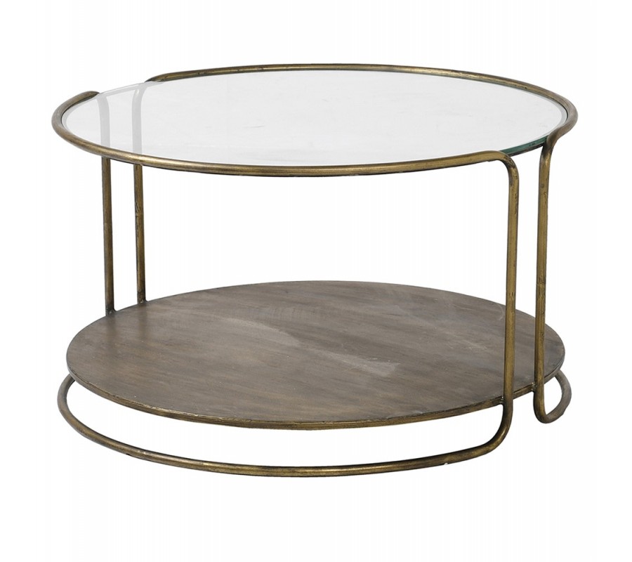Jedinečný konfererenčný stolík Miline vás zaujme svojím unikátnym luxusným dizajnom, ktorý vás vráti späť v čase do éry prvej polovice dvadsiateho storočia. Konferenčný stolík Miline disponuje okrúhlou sklenenou vrchnou doskou, ktorá je zasadená do kovového rámu zlatej farby so zostarnutým efektom vintage štýlu. Zlatý rám sa vyznačuje tým, že spája vrchnú dosku s nižšou hnedou drevenou doskou, ktorá vám môže poslúžiť ako otvorený úložný priestor, a taktiež sa vyznačuje svojou povrchovou úpravou vo vintage štýle. Povrch tak vytvára náznak opotrebovanosti produktu. Dizajnovej stránke konferenčného stolíka jasne dominuje vintage rám a podstava v zlatom kovovom prevedení, preto stolík Miline odporúčame kombinovať s art-deco zlatými doplnkami a dekoráciami s náznakom a úpravou opotrebovanosti, a taktiež aj s vintage kovovým nábytkom.