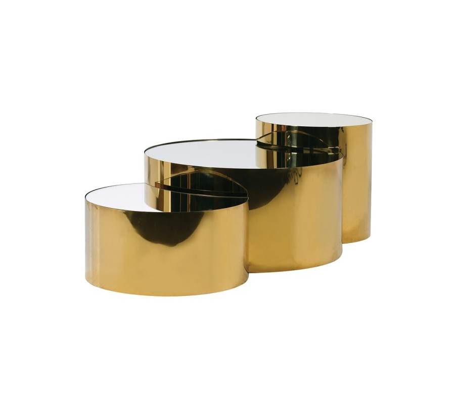 Set troch elegantných stolíkov Smithen je praktickým doplnkom každej modernej či art deco ladenej obývačky. Stolíky majú univerzálne využitie, no dominantou budú najmä pri využití ako konferenčné stolíky v kombinácii s čalúnenou sedačkou či kreslom. Stolíky okrúhleho tvaru sú vyrobené z kovu a nesú sa v luxusnej zlatej farbe. Vytvárajú zaujímavý vzhľad spôsobom spojenia a tiež vďaka rôznym veľkostiam jednotlivých častí. Povrchová doska so zrkadlovým efektom dopĺňa celkový art deco vzhľad stolíka. Tento inovatívny a nadčasový kúsok vynikne najmä v kombinácii s nábytkom zo skla a kovu, čalúnenou sedačkou či kreslom a doplnkami v art deco štýle.