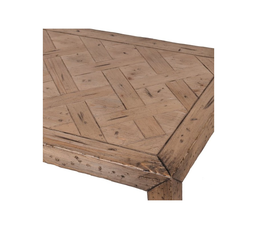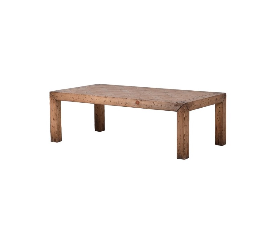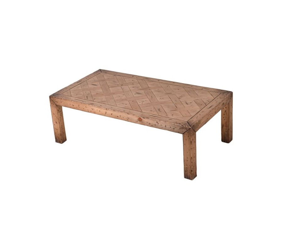 Vidiecky masívny konferenčný stolík Emilio obdĺžnikového tvaru v svetlohnedej prírodnej farbe s parketovým vzorom 130cm