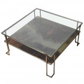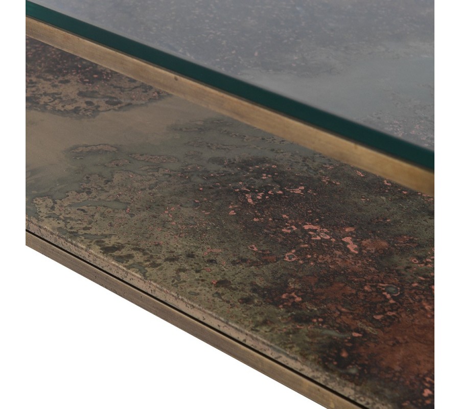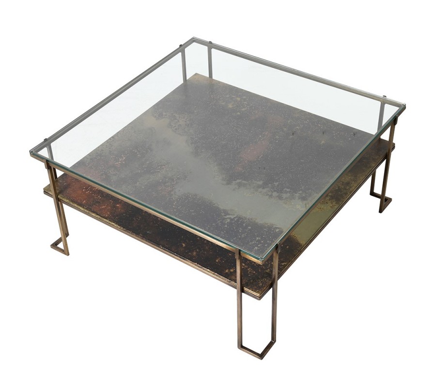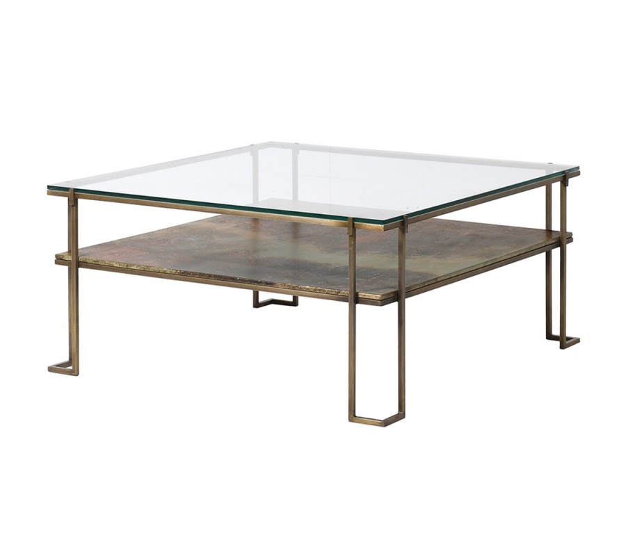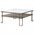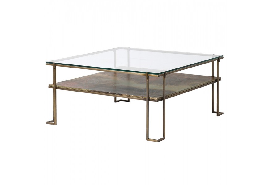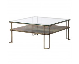Art deco luxusný konferenčný stolík Oxidia štvorcového tvaru z kovu a skla 93cm