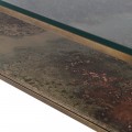 Luxusný konferenčný stolík z našej kolekcie Oxidia sa vyznačuje svojím elegantným prevedením a minimalistickou štvorcovou konštrukciou. Váš interiér rozžiari vďaka kovovej konštrukcii v medenej farbe s dizajnovými geometrickými nožičkami, ktorú dopĺňa vkusná sklenená povrchová doska. Stolík ponúka praktickú poličku, ktorú zdobí nádherný abstraktný efekt oxidácie v odtieňoch hnedej. Materiálová aj farebná kombinácia konferenčného stolíka Oxidia je typická pre štýl art-deco, preto je vynikajúcim adeptom do práve takto ladených obývačiek s luxusným nádychom. Nádhernú kombináciu vytvorí napríklad so zamatovou čalúnenou sedačkou či kreslom a doplnkami v zlatej farbe. Pre dokonalý súlad odporúčame tiež kombináciu s ďalšími luxusnými kúskami z kolekcie Oxidia.