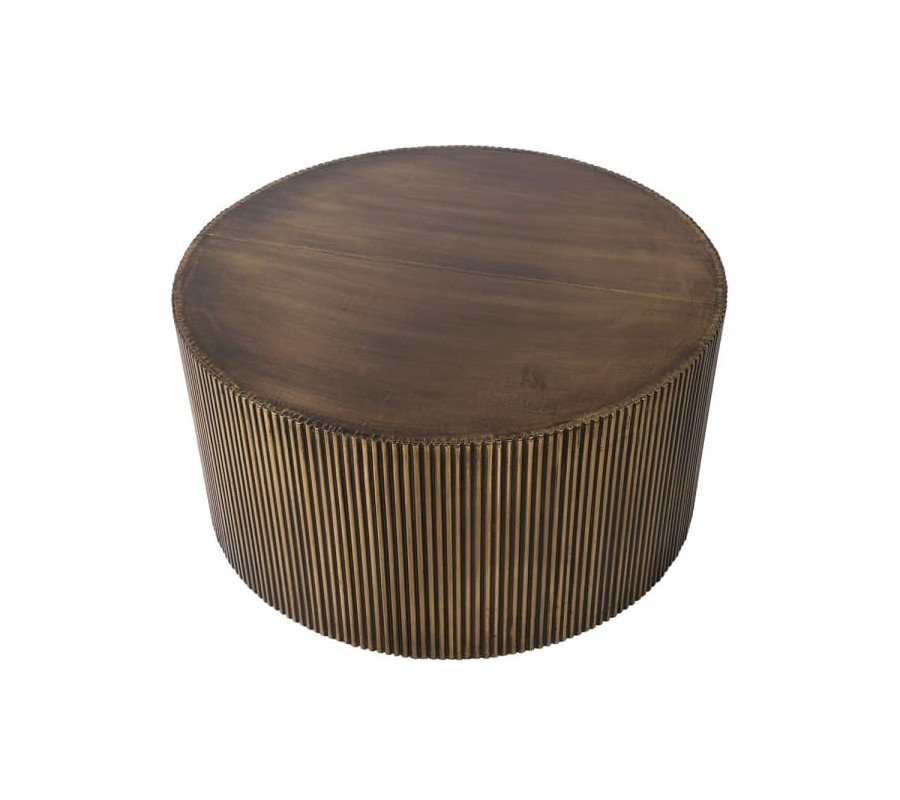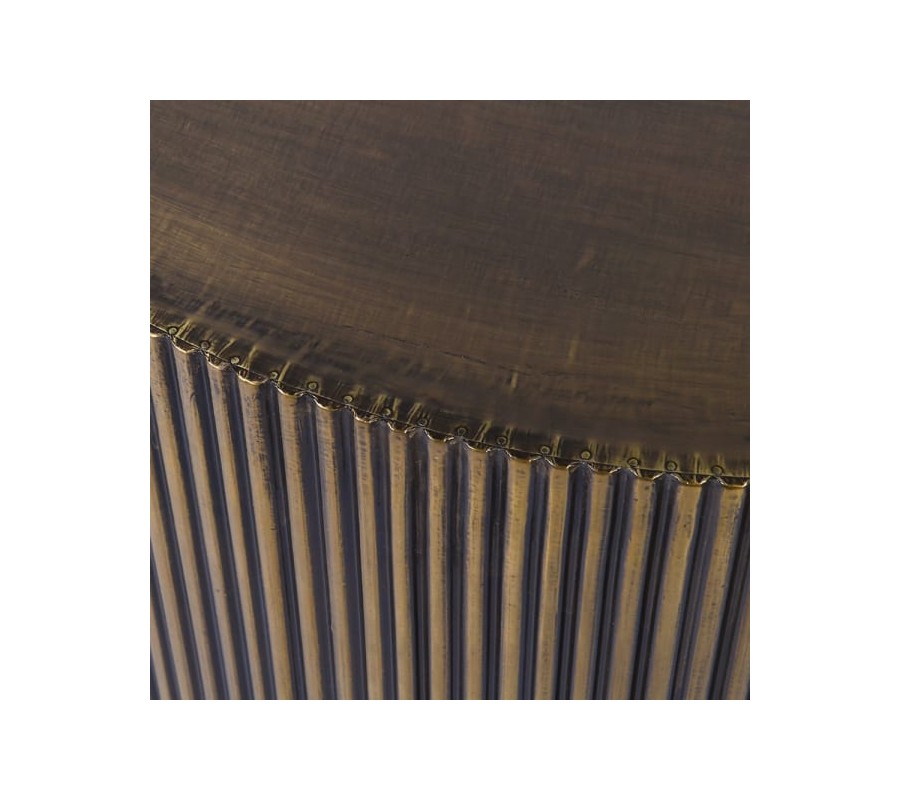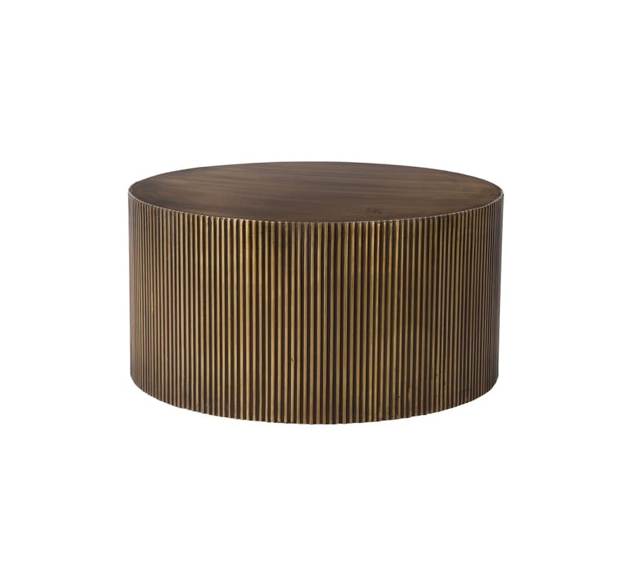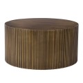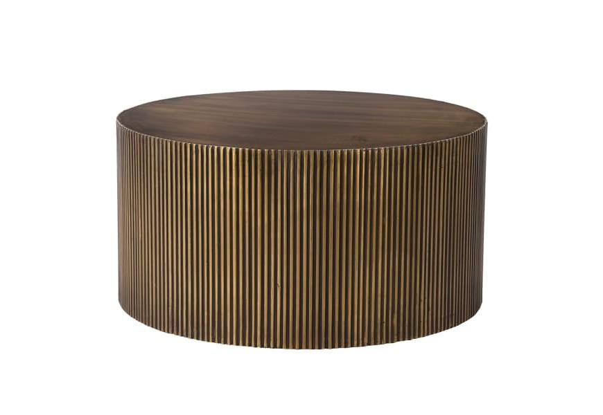 Unikátny konferenčný stolík Horton je štýlovým kúskom nábytku, ktorý vhodne doplní najmä art deco ladené priestory. Pozostáva z kovovej mosadznej konštrukcie okrúhleho tvaru, ktorú po obvode zdobí rebrovaný reliéfny vzor. Jemná patina na reliéfnych záhyboch tmavých odtieňoch dodáva stolíku starobylý antický nádych. Lesklá farba mosadze príjemne doplní a rozžiari vašu obývačku a vnesie do nej honosný nádych typický pre štýl art deco. Jednoduchá konštrukcia sa snúbi s nadčasovým vzhľadom, vďaka čomu je stolík skvelým kúskom do moderne ladených priestorov obývačiek, rovnako ako aj art deco zariadených kaviarní, beauty salónov či lobby barov. Odporúčame konferenčný stolík Horton kombinovať so zamatovým kreslom či sedačkou a štýlovými dekoráciami zo skla či kovu.