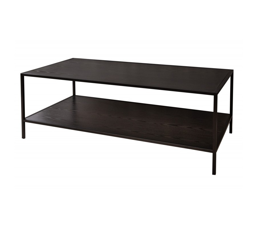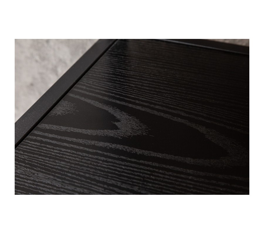Konferenčný stolík z kolekcie industriálneho štýlového nábytku Industria Negra Vás zaujme svojím čiernym vzhľadom, ktorý krásne doplní Vašu modernú obývačku v kombinácií s tmavo čalúnenými kreslami, kobercami, či sedačkami. Konferenčný stolík Industria Negra v obdĺžnikovom tvare je vyrábaný z čierneho dyhovaného dreva v prevedení jaseň, ktoré disponuje viditeľnou kresbou dreva s prirodzeným vzhľadom. Vrchná doska konferenčného stolíka Industria Negra je spoločne so spodnou doskou chránená kovovou konštrukciou v lakovanom čiernom práškovom vyhotovení, čo vyzdvihne drsný industriálny vzhľad. Hrúbka dosiek je 1,2cm pričom výškový rozdiel dosiek je 30cm, čo vám umožní pohodlne uložiť vaše cennosti, magazíny, elektroniku, či dekorácie. Kovový čierny vzhľad konferenčného stolíka Industria Negra odporúčame kombinovať s nábytkom z rovnomennej kolekcie, alebo z kolekcií Industria Natura a Industria Durante.