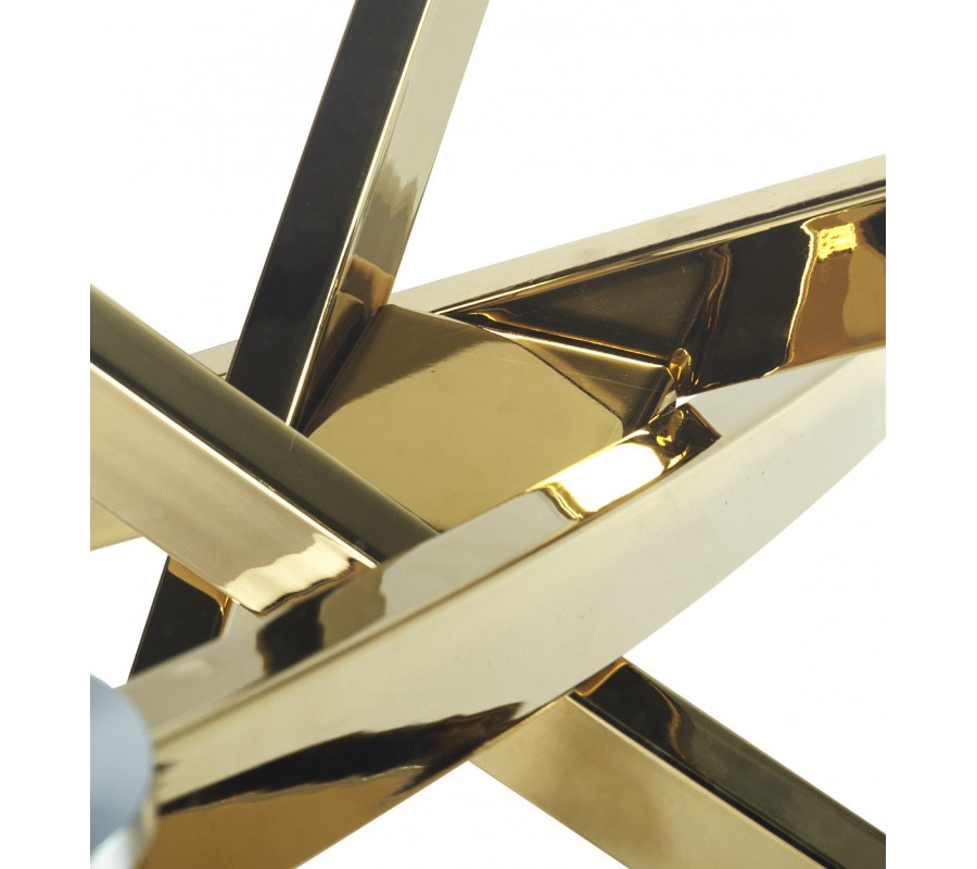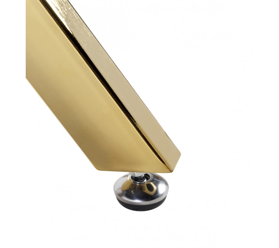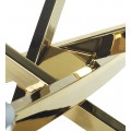 Exkluzívny konferenčný stolík Brilia sa vyznačuje svojím luxusným glamour vzhľadom. Vhodne doplní nadčasové art-deco ladené obývačky a svojím dominantným originálnym dizajnom pritiahne pozornosť nejedného návštevníka. Stolík zaujme najmä vďaka svojej štýlovej a jedinečnej konštrukcii pozostávajúcej zo štyroch mohutných kovových nôh, ktoré sa v strede vzájomne prekrižujú a vytvárajú zaujímavý nepravidelný útvar. Chrómová kovová konštrukcia sa nesie v žiarivej zlatej farbe, vďaka čomu dostáva luxusný nádych štýlu art-deco. Podstavu dopĺňa jednoduchá obdĺždniková povrchová doska z kvalitného temperovaného skla umocňujúca nadčasový moderný nádych. Fazety po bokoch zabezpečujú elegantný vzhľad a zároveň sú vkusným bezpečnostným prvkom zjemňujúcim ostré hrany. Konferenčný stolík Brilia si svoje miesto nájde v luxusných a glamour ladených interiéroch, rovnako ako aj v tématických priestoroch kaviarní či firiem. Pre vytvorenie dokonalého art-deco vzhľadu odporúčame kombináciu aj s ďalšími kúskami z našej kolekcie Brilia.