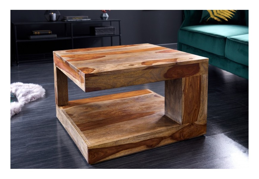 Dizajnový vidiecky konferenčný stolík Giant z masívneho dreva sheesham hnedej farby 60cm