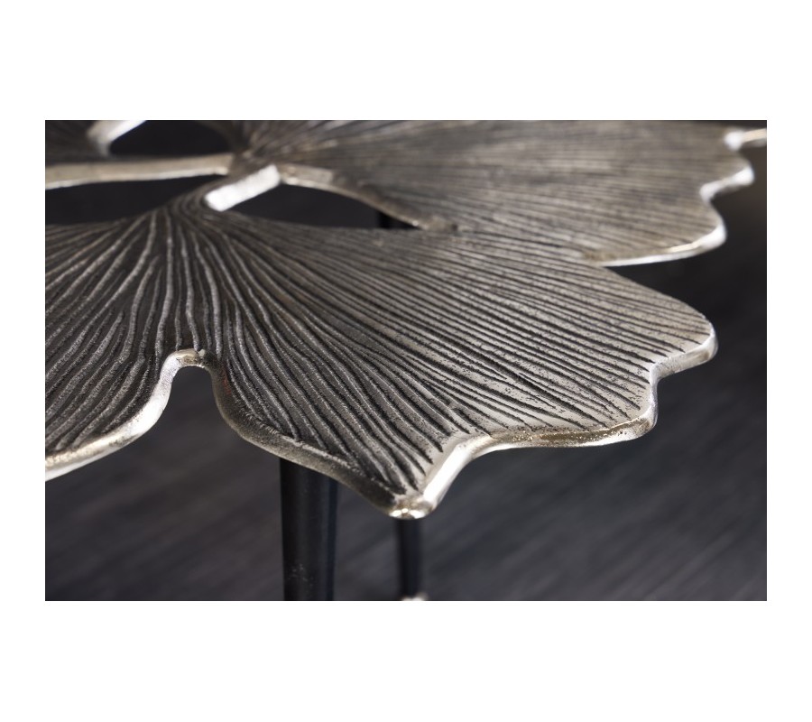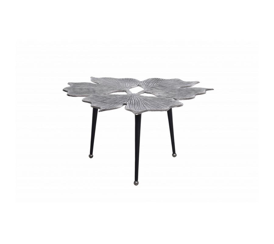 Art-deco strieborný konferenčný stolík Ginko s troma čiernymi nožičkami 75cm