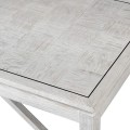 Konferenčný stolík z našej kolekcie Quadria Blanca je tým pravým doplnkom do moderných nadčasových obývačiek. Disponuje obdĺžnikovou povrchovou doskou z masívneho dubového dreva, ktorej povrch zdobí jeho nádherná prirodzená štruktúra. Vzniká tak príjemný naturálny vzhľad, ktorý v kombinácii s elegantným dizajnom vnesie do vašich priestorov útulný nádych. Stôl sa nesie v sivobielom off white odtieni, vďaka čomu je nielen skvelo kombinovateľný so širokou škálou farieb, ale dostáva tak aj čistý elegantný vzhľad, ktorý vaše priestory zaručene rozžiari. Vrchnú dosku dopĺňajú jednoduché tužujúce sa nožičky zdobené čiernymi prvkami na spodnej časti. Konferenčný stolík Quadria Blanca vkusne doplní moderne ladené obývačky v kombinácii s čalúnenou sedačkou a ďalším dreveným nábytkom. Vhodné sú tiež kúsky z kovu a skla a kontrastné tmavé dekorácie.